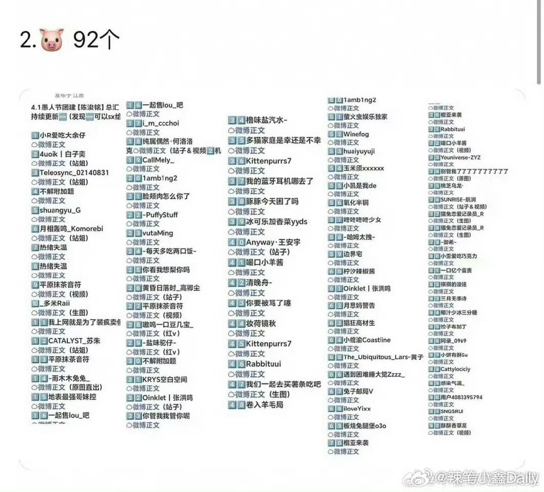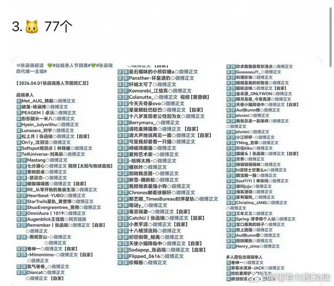 四代楼内专属的愚人节汇总榜1-王橹杰101个 2-陈浚铭92 3-张函瑞77 4