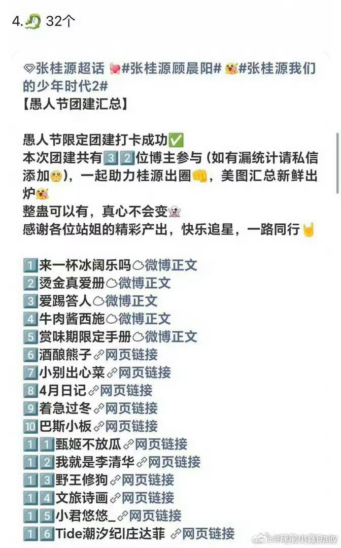 四代楼内专属的愚人节汇总榜1-王橹杰101个 2-陈浚铭92 3-张函瑞77 4-张桂源🐉32 5-杨博文18 6-左奇函157-陈奕恒14