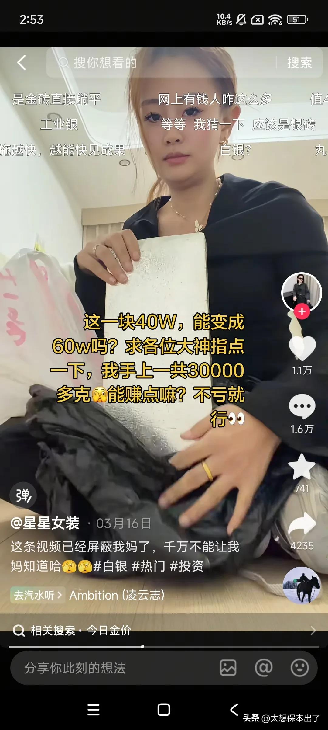 21世纪最伟大的操盘就是把工业板料白银卖给宝妈!!! 假以时日,应该能和当年大妈买黄金一样解套吧!!!