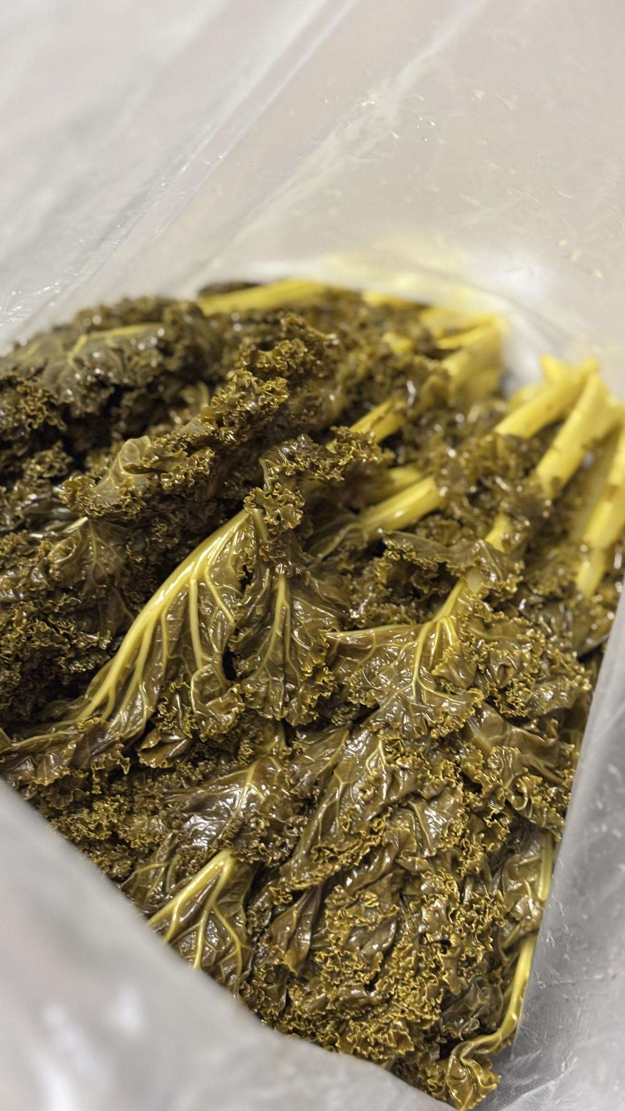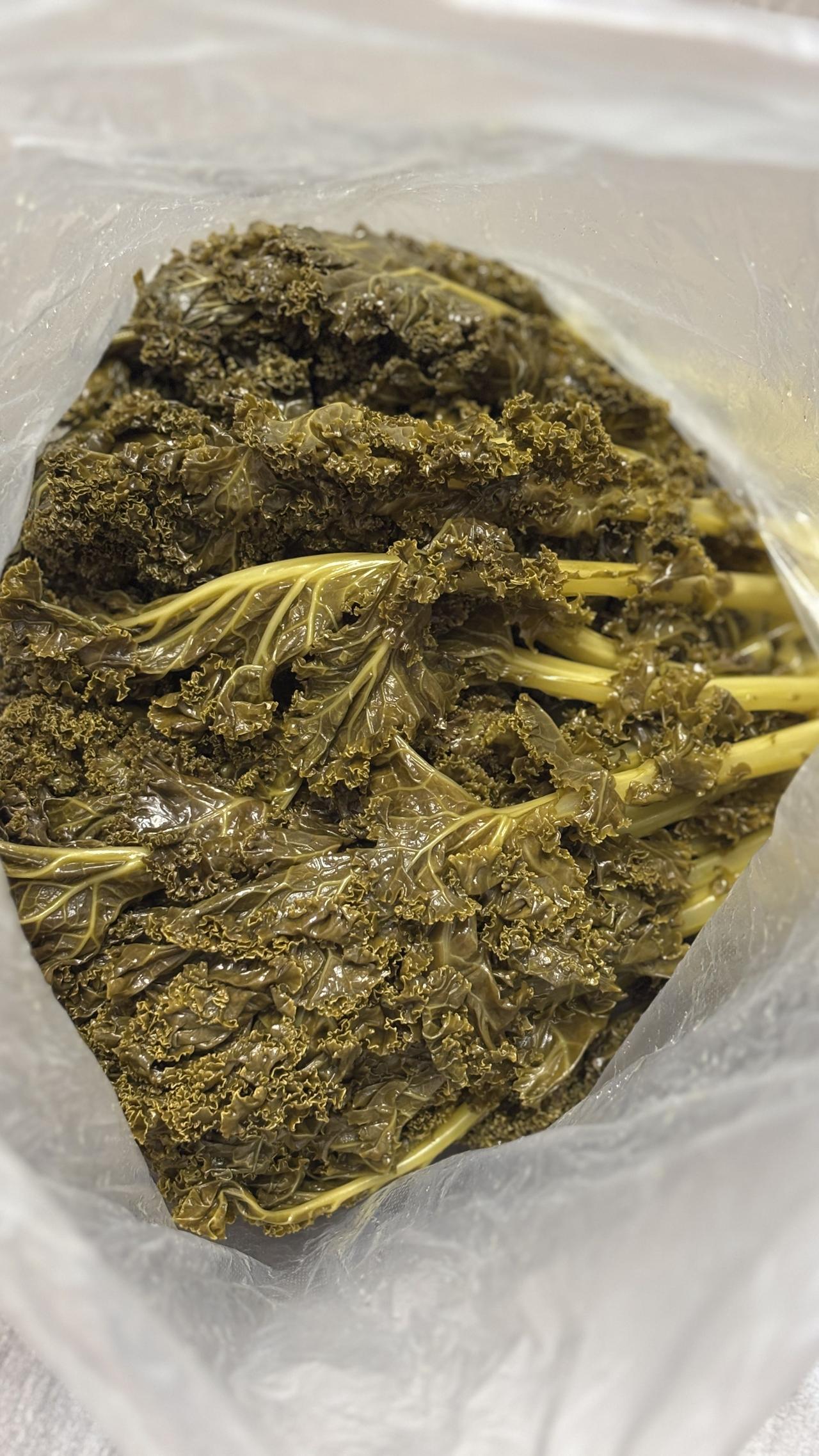吃不完的羽衣甘蓝这样吃简直太妙了! 新采收的羽衣甘蓝先不用着急洗,而是用开水烫过后再清洗,这样羽衣甘蓝就会变软,清洗起来简单很多。洗干净后用凉开水再过滤一遍,最后就是腌制啦。跟平时腌菜的步骤是一样的,先放到可以密封的容器里,然后加入适量的食用盐,上面再倒入凉开水,半淹没就可以,然后用一个重物压上,最后密封起来,这样半个月后就变的金黄金黄的。腌制后的羽衣甘蓝想怎么吃就怎么吃,它的味道跟梅干菜的味道非常的相似,可以用来炖肉、炒各种豆子都是非常好吃的,关键它比做梅干菜简单很多哦!绿羽衣甘蓝 羽衣甘蓝食谱