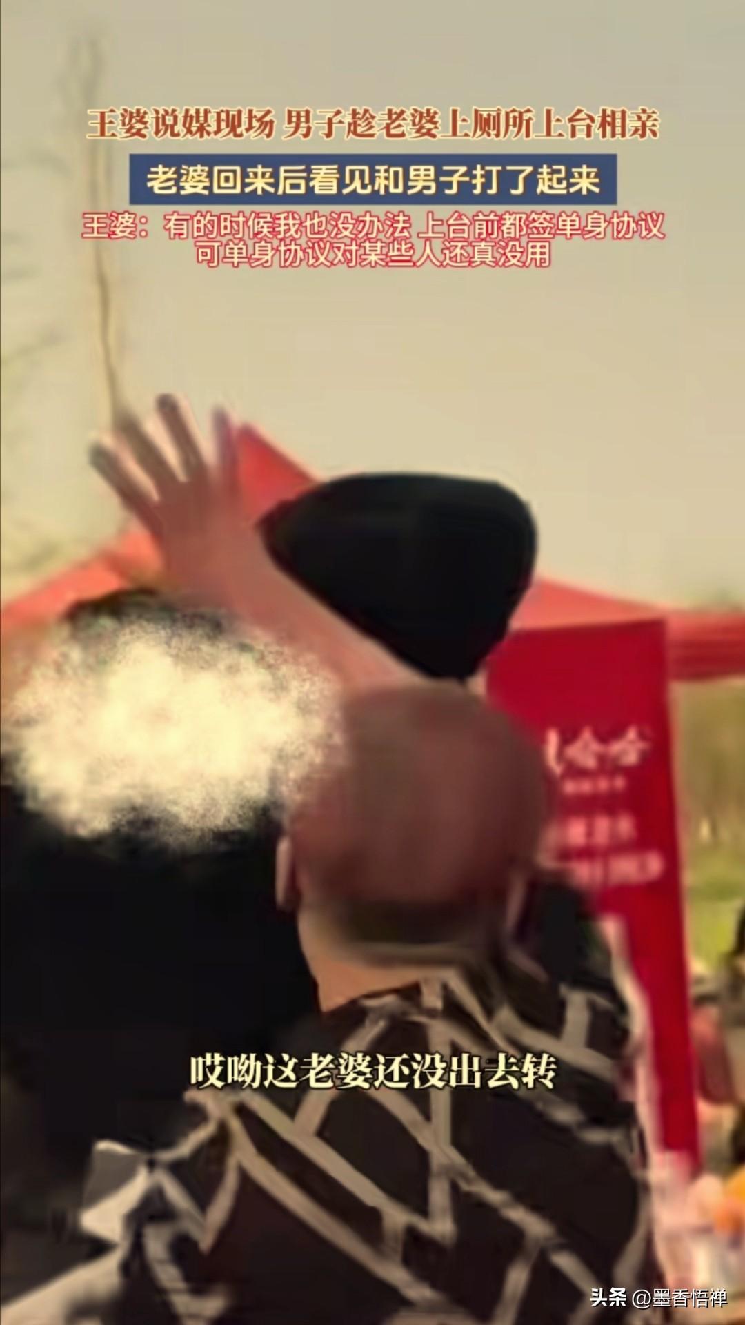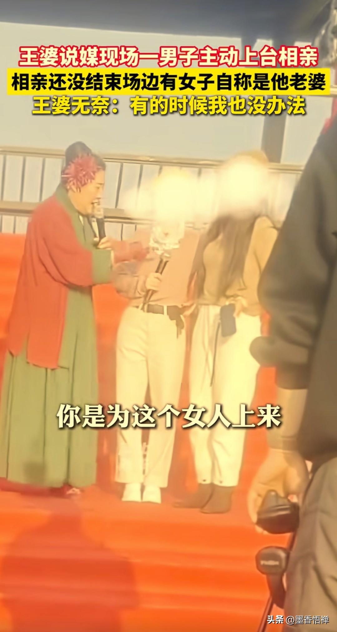太炸裂了!蚌埠“王婆说媒”现惊狗血剧情:已婚男趁老婆上厕所相亲,脚踏两只船,被抓现场当场撕烂! 4月1日,安徽蚌埠“王婆说媒”现场直接上演了一出离谱到没边的现实版狗血剧! 谁能想到,一名已婚男子竟然趁着老婆去上厕所的空档,偷偷溜到舞台上相亲,不仅当场“左右逢源”,甚至还表态“两个都喜欢”。 结果老婆突然杀回现场,当场揪出丈夫的“骚操作”,现场瞬间失控,连一向泼辣控场的主持人王婆都被整得束手无策。 当天的“王婆说媒”活动现场人山人海,氛围相当热烈。一名49岁的离异女子在台上征婚,要求寻找45-55岁之间的伴侣。介绍完自己后,一名中年男子主动跳上台参与互动。 男子自称51岁,是固镇人,2012年离异,目前单身,有一儿一女,还说自己曾经辉煌过。台上的女子看完觉得“挺合适”,当场同意交往。 没想到,台下另一名女子看到这名男子后也说愿意上台,表示自己也喜欢他。 此时,面对眼前两位女子,台上的男子竟然还表示:两个都喜欢,正在抉择,就在这“修罗场”般的关键时刻,主角的老婆杀到了! 男子的老婆从厕所出来,一眼看到台上混乱的一幕,老公竟然在相亲,而且还同时撩两个女人,瞬间火冒三丈。 她二话不说直接冲上去,对着慌忙下台的丈夫又拉又扯,情绪激动地当场对峙,当场开撕。 男子被抓个正着,现场瞬间陷入混乱。围观群众的惊呼声、争执声交织在一起,原本热闹的相亲现场直接秒变“全武行”。 王婆也崩溃了,说这签了单身协议也没用,面对这突发状况,一向泼辣幽默、控场能力极强的主持人王婆也彻底懵了。 她一边拼命安抚情绪激动的老婆,一边无奈吐槽出了名场面: “上台前都让签了单身协议,结果对某些人根本没用!” 还忍不住感慨:“哎呦这老婆还没出去转,老公就跑上台了,真是没办法!” 据现场知情人士透露,该男子早已结婚。此次竟是趁妻子上厕所的空档,偷偷溜到台上凑热闹,本想图个新鲜,找个“新感觉”,没想到会被妻子当场撞破。 不仅颜面尽失,还引发了一场不小的冲突。 网友炸锅:这是真不怕死 视频传播后,网友们都笑翻了,评论区更是一片狂欢: “这操作比电视剧还离谱,主打一个艺高人胆大,真敢想!” “王婆今天的KPI怕是完成不了了,全被这对夫妻搅和了!” “已婚还来相亲,是真不怕社死到极致啊!” 当然也有网友理性表示: 线下相亲活动本是为单身人士搭建的交友平台,该男子的行为不仅违背了活动初衷,也辜负了妻子的信任。说到底,还是自身责任感缺失。 “王婆说媒”凭借真实、接地气的互动风格,早已成为蚌埠当地的热门打卡活动。 但此次的“社死名场面”也再次提醒所有人: 婚姻的核心是忠诚与责任。不管是出于一时兴起,还是寻求刺激,已婚人士随意参与单身相亲,本身就是对婚姻的不尊重。 这场闹剧给所有人提了个醒:珍惜眼前人,守住婚姻底线,才是经营感情的根本。 不然,最终只会落得个尴尬收场、人人唾弃的下场。