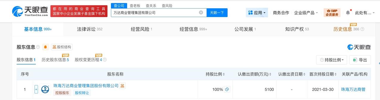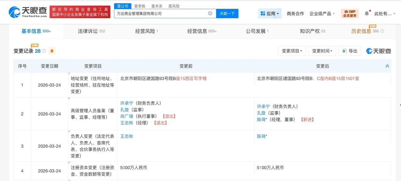 肖广瑞卸任万达商业管理集团执行董事 万达商业管理集团增资至5100万 天眼查工