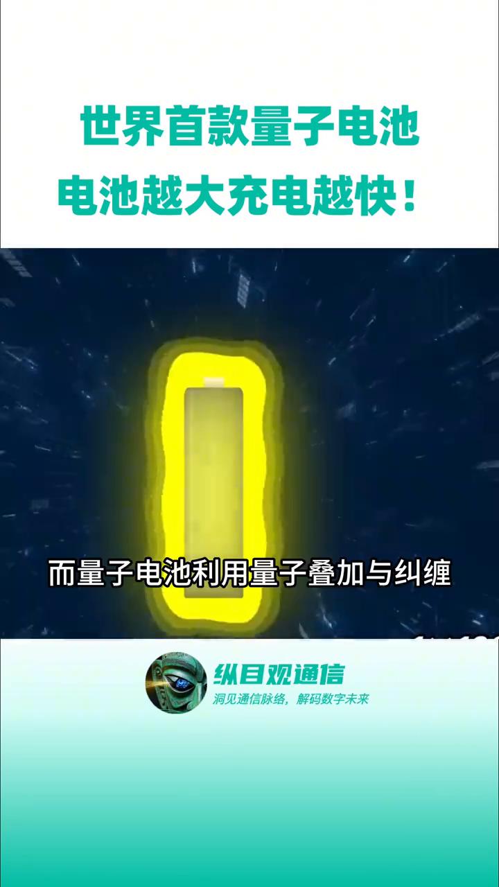 世界首款量子电池,电池越大充电越快。 纵目观通信。 家人们太猛了!你敢信有一种电池,电池越大充电反而越快?100个单元一起充,速度直接提升100倍。这并非科幻,2022年澳大利亚科学家制成了全球首个量子电池原型。近期团队又验证了完整的充放电循环,其核心机制叫做"集体效应"。 传统电池的储能单元彼此独立,充电时间只能线性叠加。而量子电池利用量子叠加与纠缠,让所有单元协同成一个整体,正如合唱团的共鸣远非个人音量之和。集体行为催生了超越经典直觉的加速充电,单元数越多充电越快。 当然,目前它还处在极早期阶段,储能寿命仅微秒级,能量密度也很小。但科学家的目标是未来用于电动车,实现比加油更快的充电,甚至远程无线输电。你觉得这项技术多久能走出实验室?