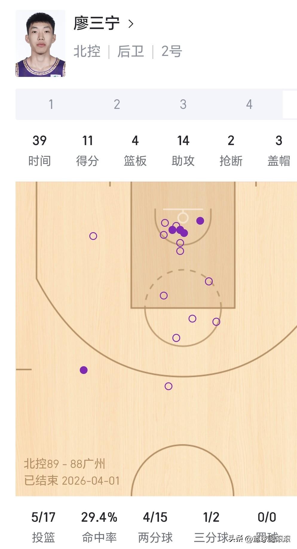 所有人都在吹里勒绝杀,却没人看见廖三宁才是北控赢球的神!14助3帽直接锁死季后赛! 谁懂啊!北控这场1分绝杀广州,全网都在刷里勒的神仙三分,可真正把这场胜利焊死的,是廖三宁! 39分钟打满全场,11分14助攻4篮板2抢断3盖帽,这份数据有多恐怖? ✅ 14次助攻:把北控双塔喂到吐,全场进攻的绝对大脑,没有他的串联,根本没有绝杀的机会 ✅ 3次盖帽:1米9的后卫,硬生生帽了广州核心威金顿3次!每一次都直接浇灭反击势头,攻防两端直接拉满 ✅ 最后1.5秒:冷静发边线球,精准找到里勒,完成绝杀的最后一块拼图 全场17投5中手感冰凉又怎样?廖三宁从不是靠得分吃饭的球员! 他是CBA本土助攻王,是北控的绝对核心,是能在绝杀夜默默扛下一切的真核! 从当年的青涩小将,到如今撑起一支球队的领袖,廖三宁的成长肉眼可见。 绝杀固然精彩,但廖三宁的全能表现,才是北控赢下这场卡位战、冲进季后赛的根本! 北控男篮 廖三宁 CBA 里勒绝杀 北控vs广州