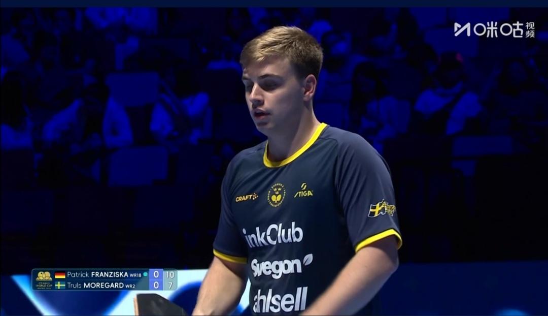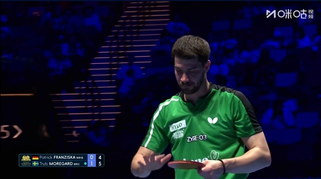 4/4区,男单1/8决赛。 德国老将弗朗西斯卡第一局8-3领先,被双科亚军、瑞典