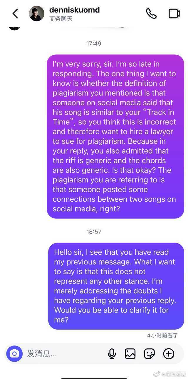 李荣浩方否认恋人抄袭 判定一首歌抄袭,并不是“听起来像”,就能把帽子扣下来了,所以《Track in time》作者目前的说法站不住脚。正确的做法是去扒谱对比,目前已经有人扒了,很明显《恋人》和《Track in time》旋律是不一样的。而现在这个《Track in time》作者在IG对询问的消息已读不回了