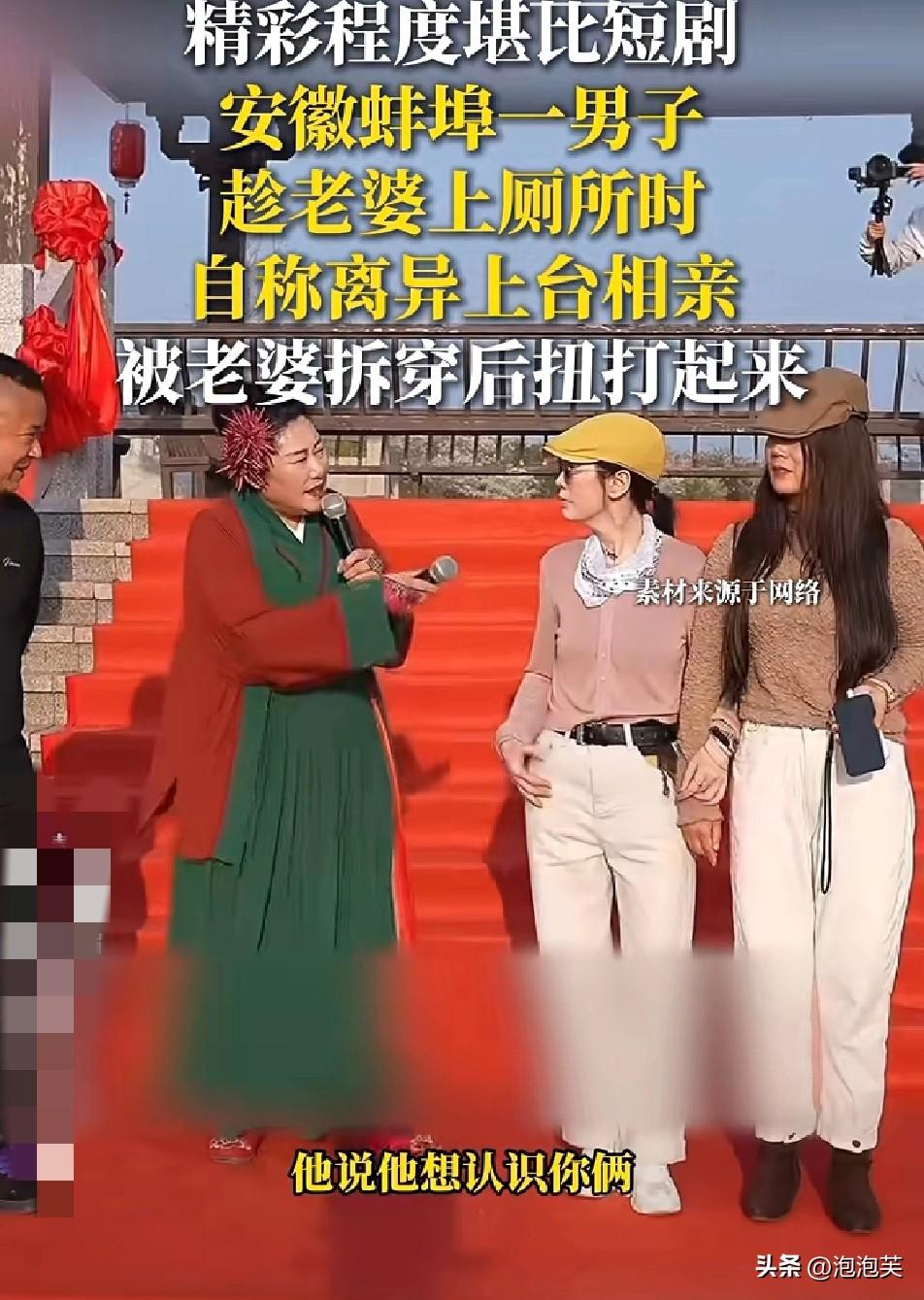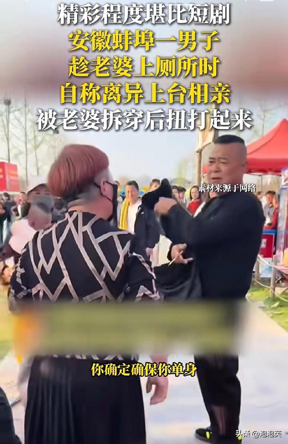 离谱 安徽蚌埠相亲现场 一男子趁妻子上厕所,赶紧上台冒充离异人士相亲 还说自己离婚12年 没想到刚聊几句,妻子就回来了 当场戳穿他的谎言,场面一度十分混乱 更狗血的是,现场还有两位女士看上了他,得知真相后也是一脸懵 婚姻里最忌讳的就是欺骗 这种行为既伤害了伴侣,也丢了自己的脸面 你觉得这种行为该不该被谴责 每日一悟分享 相亲