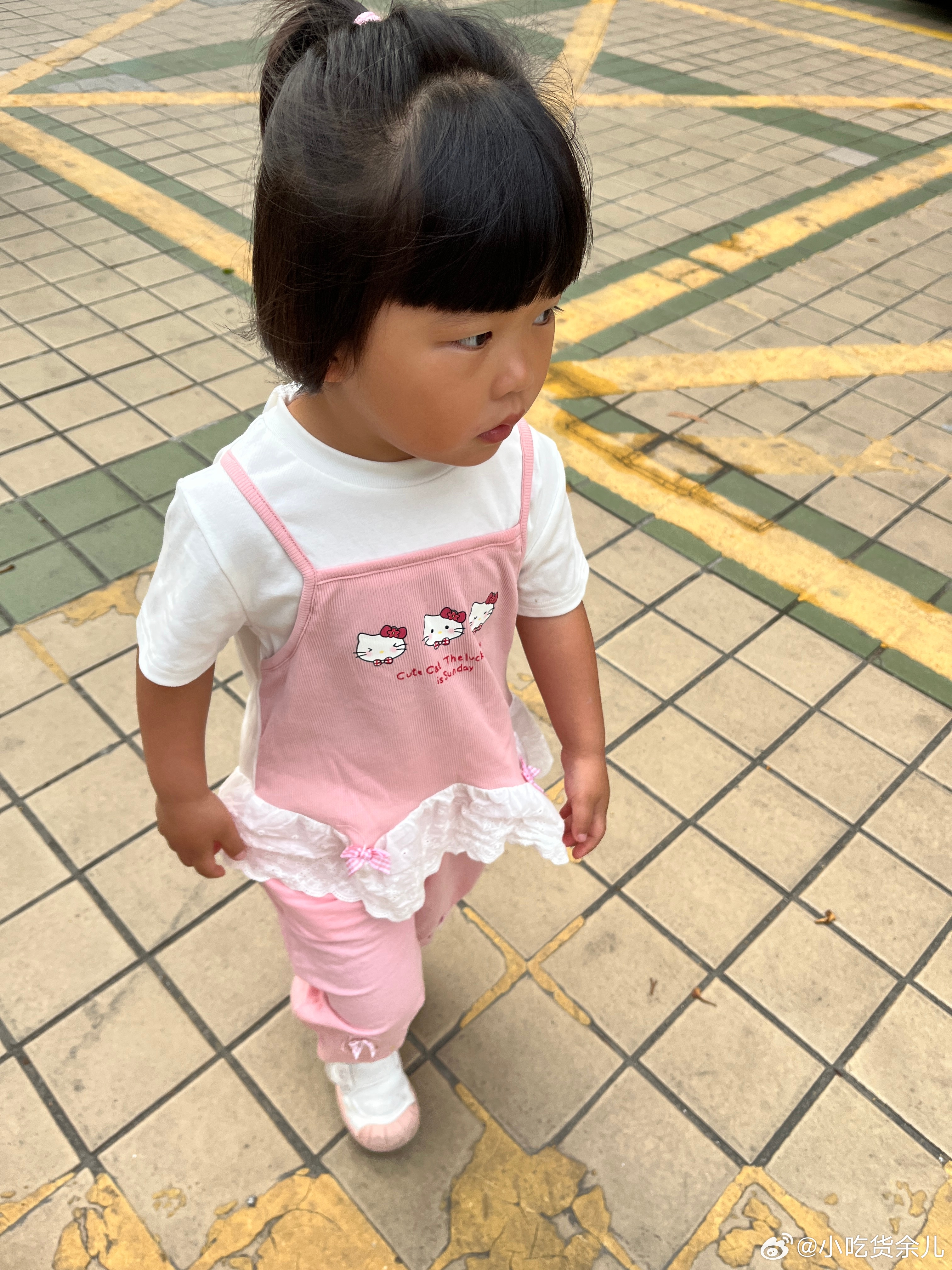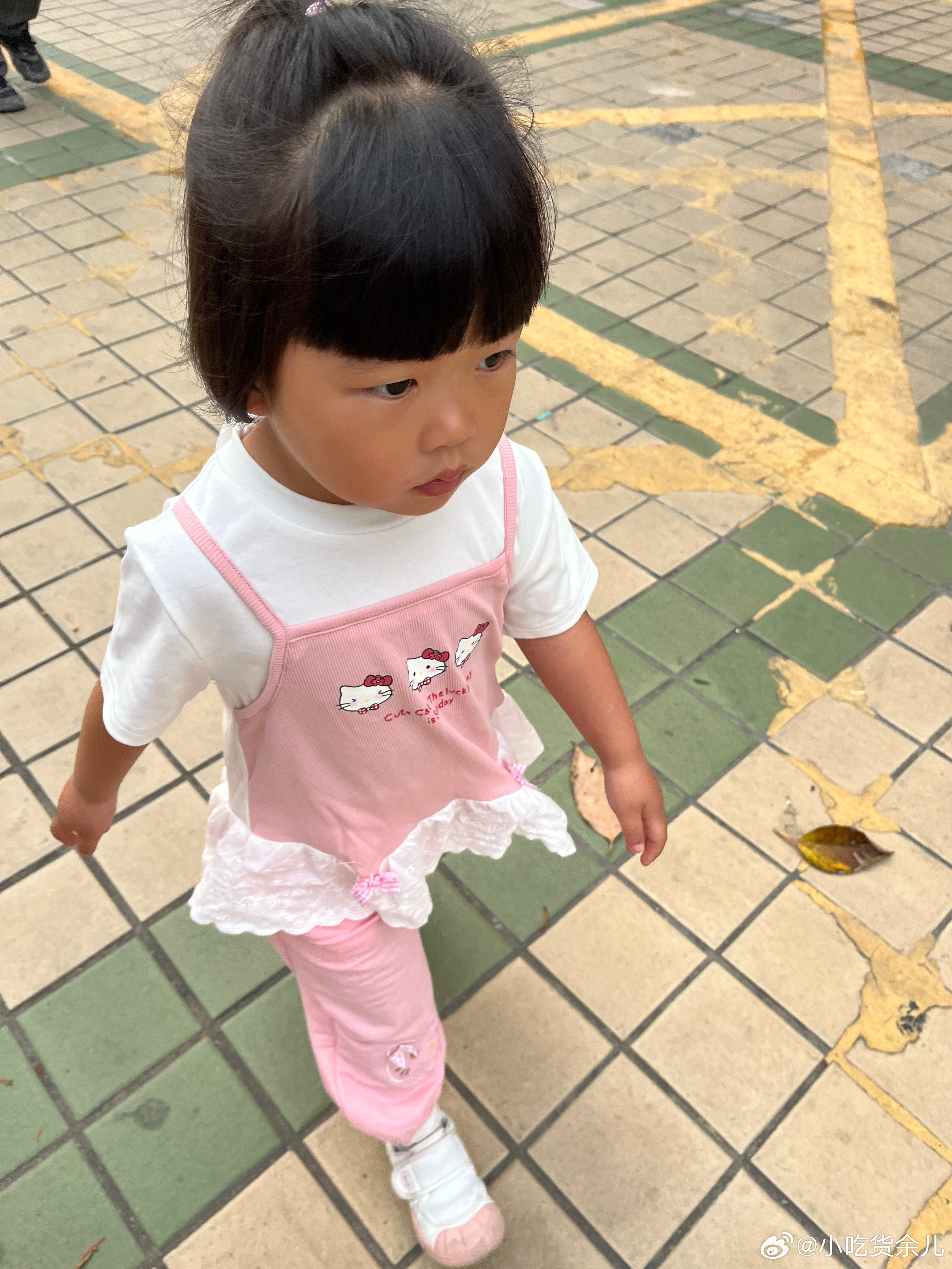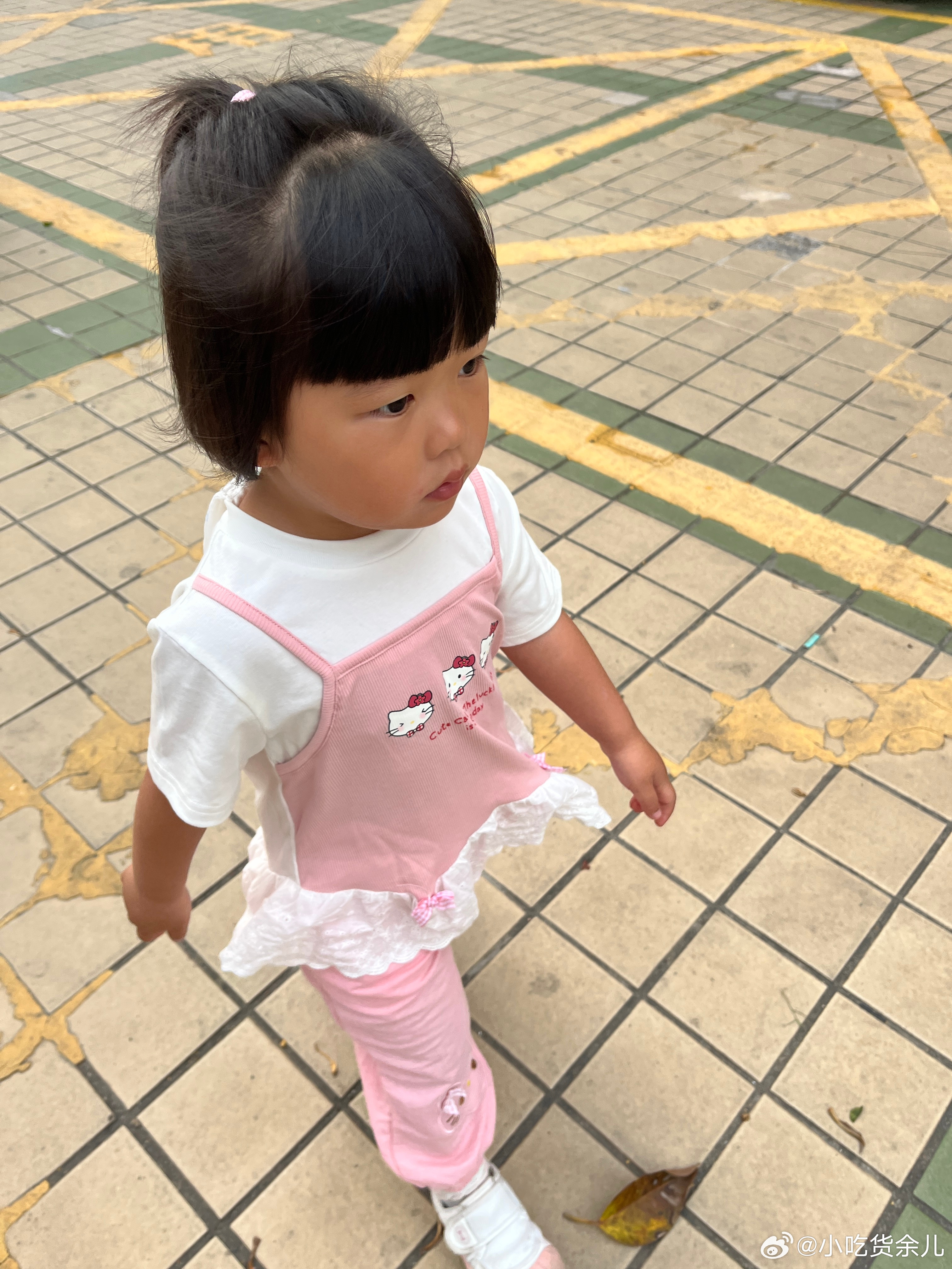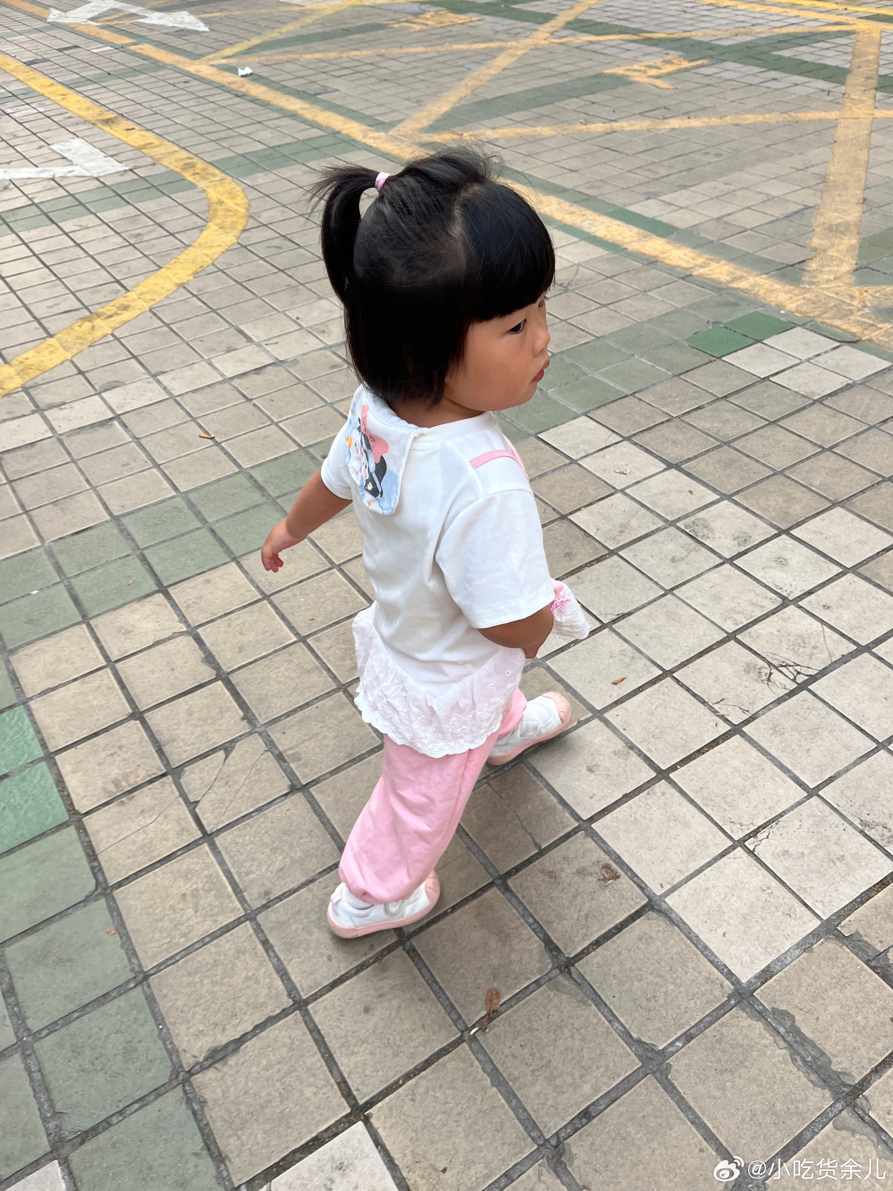 柠宝:妈妈,好不好看,可不可爱?我:好看,可爱。虽然阴天,但是没有风不冷,书包也