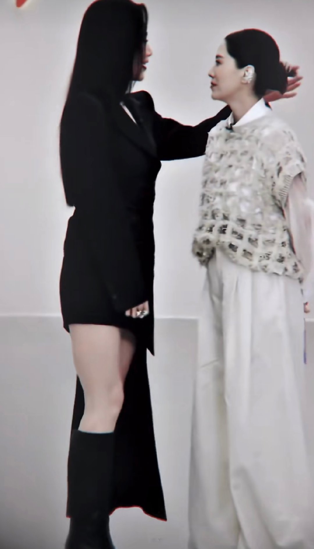 海清坐姿别人端庄端坐,海清直接慵懒靠肩,这种随性松弛感太圈粉。松弛系艺人上新了