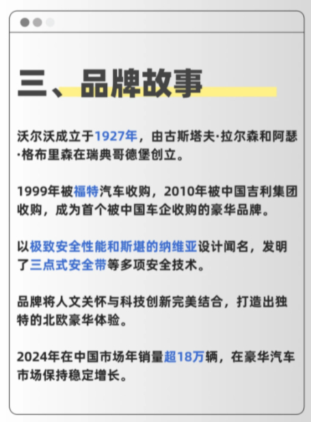 每日认识一个汽车品牌:沃尔沃源自瑞典的北欧豪华主义,将安全基因融入血液的移动安全堡垒品牌冷知识:沃尔沃于1959年首创的三点式安全带专利,无偿开放给全球汽车厂商使用,这一伟大发明至今已拯救了超过100万人的生命,完美诠释了品牌"安全至上"的理念。