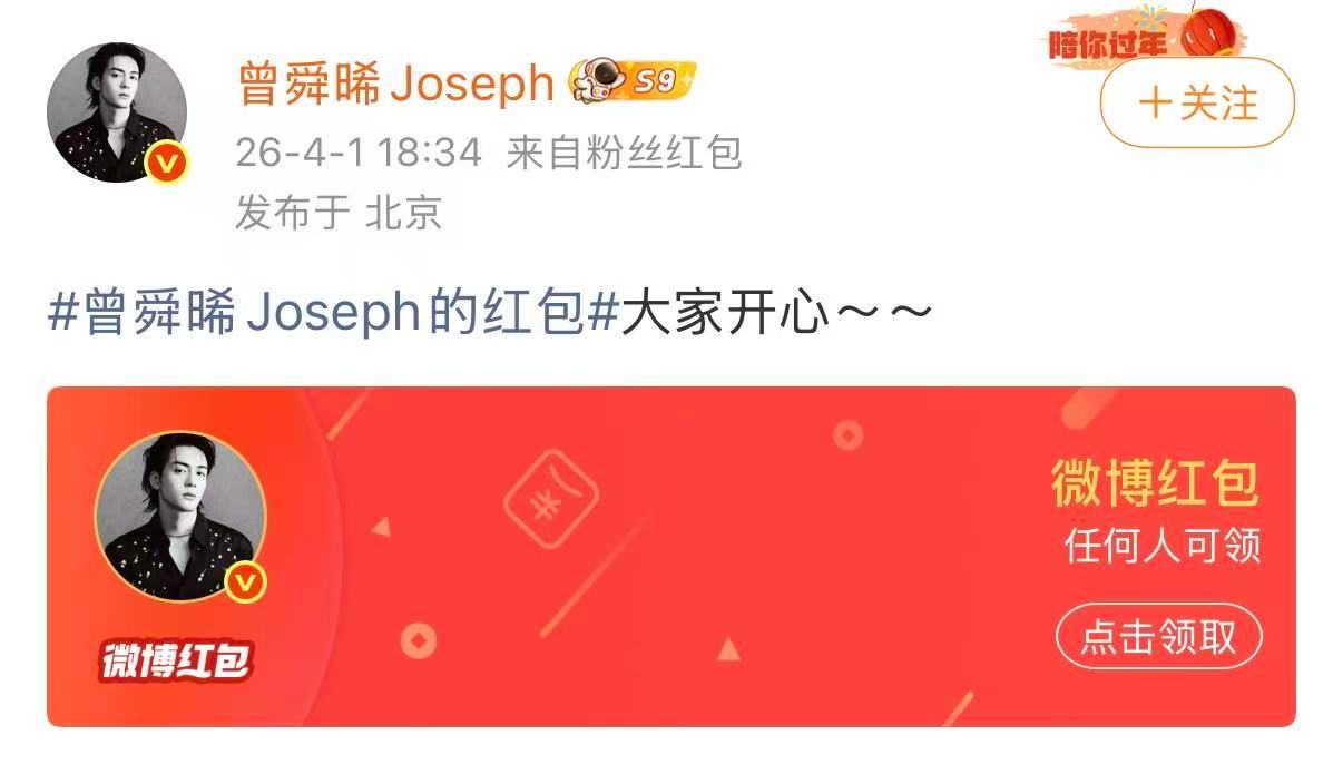 曾舜晞武拾光没有的钱曾舜晞补了武拾光没钱关曾舜晞啥事谁懂啊!武拾光在剧里被雾妄言拿捏住,空钱包穷得叮当响,拽都拽不起来呢~可戏外曾舜晞超豪气的,两万剧宣红包说发就发!!!