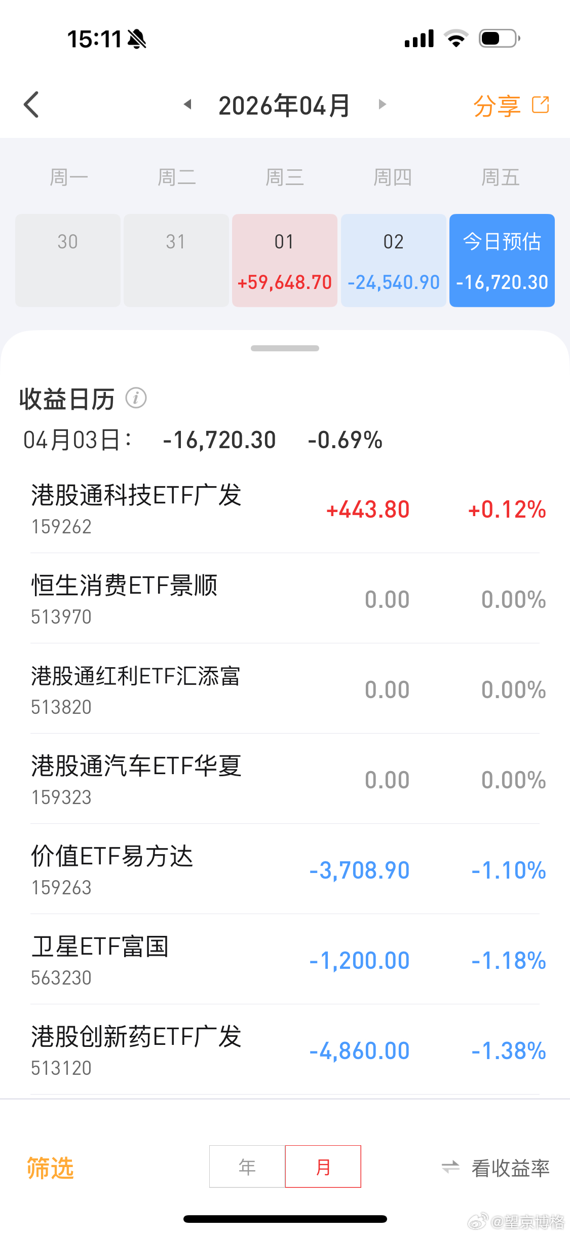 今天港股休市,ETF帐户竟然还巨亏1.7万大家多点赞,博格持续晒实盘基金恒生科技
