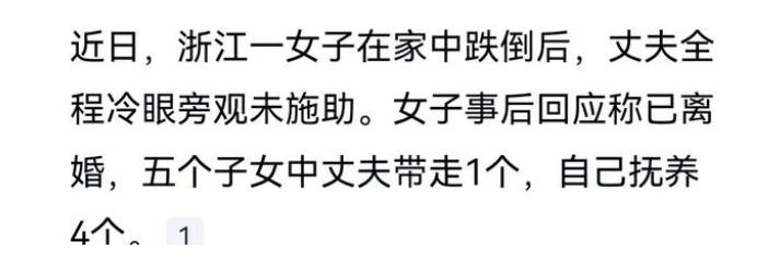 浙江女子家中摔倒丈夫冷眼旁观:监控拍下婚姻最后一面,她带四个孩子转身重生
