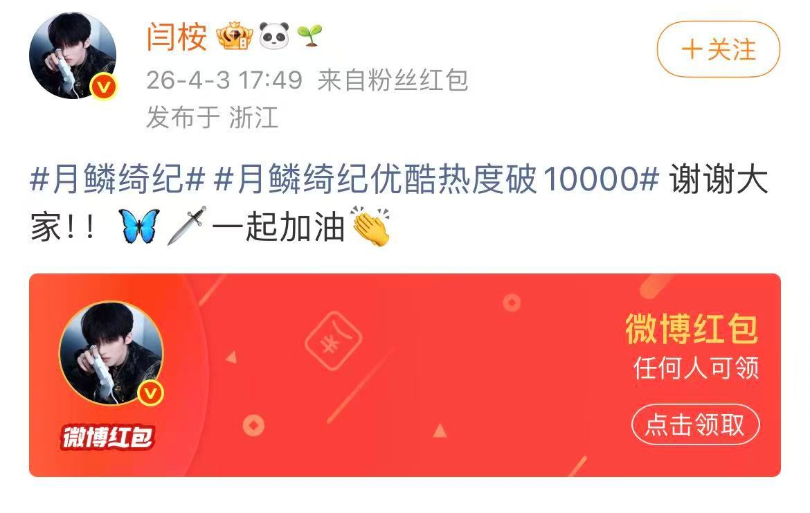 闫桉破万红包闫桉剧宣红包闫桉发红包啦!闫桉也发红包啦!!!