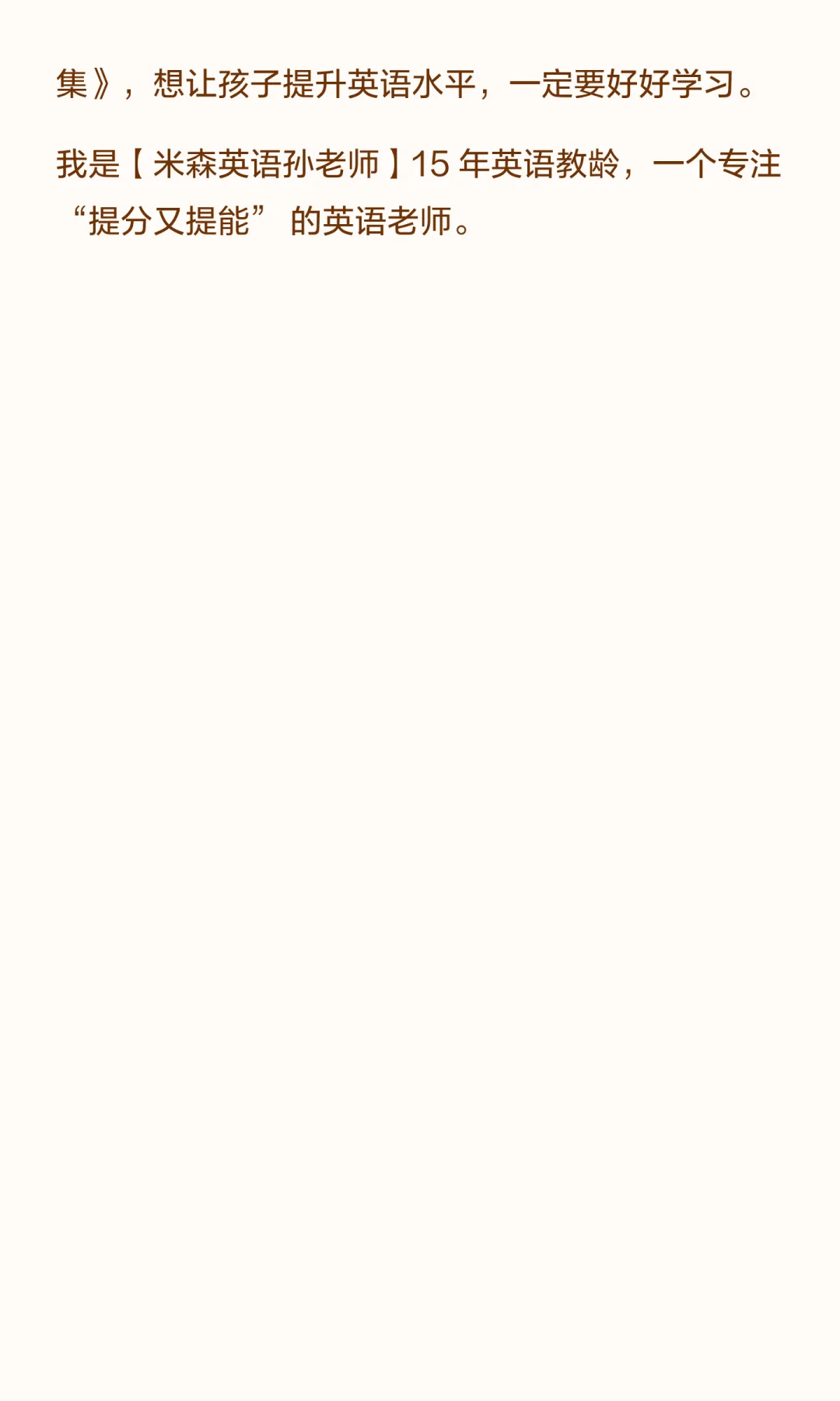 我是【米森英语孙老师】15 年英语教龄,一个专注 “提分又提能” 的英语老师。
