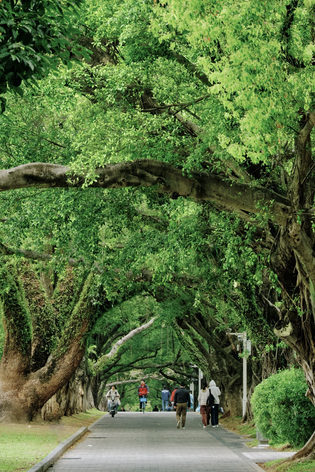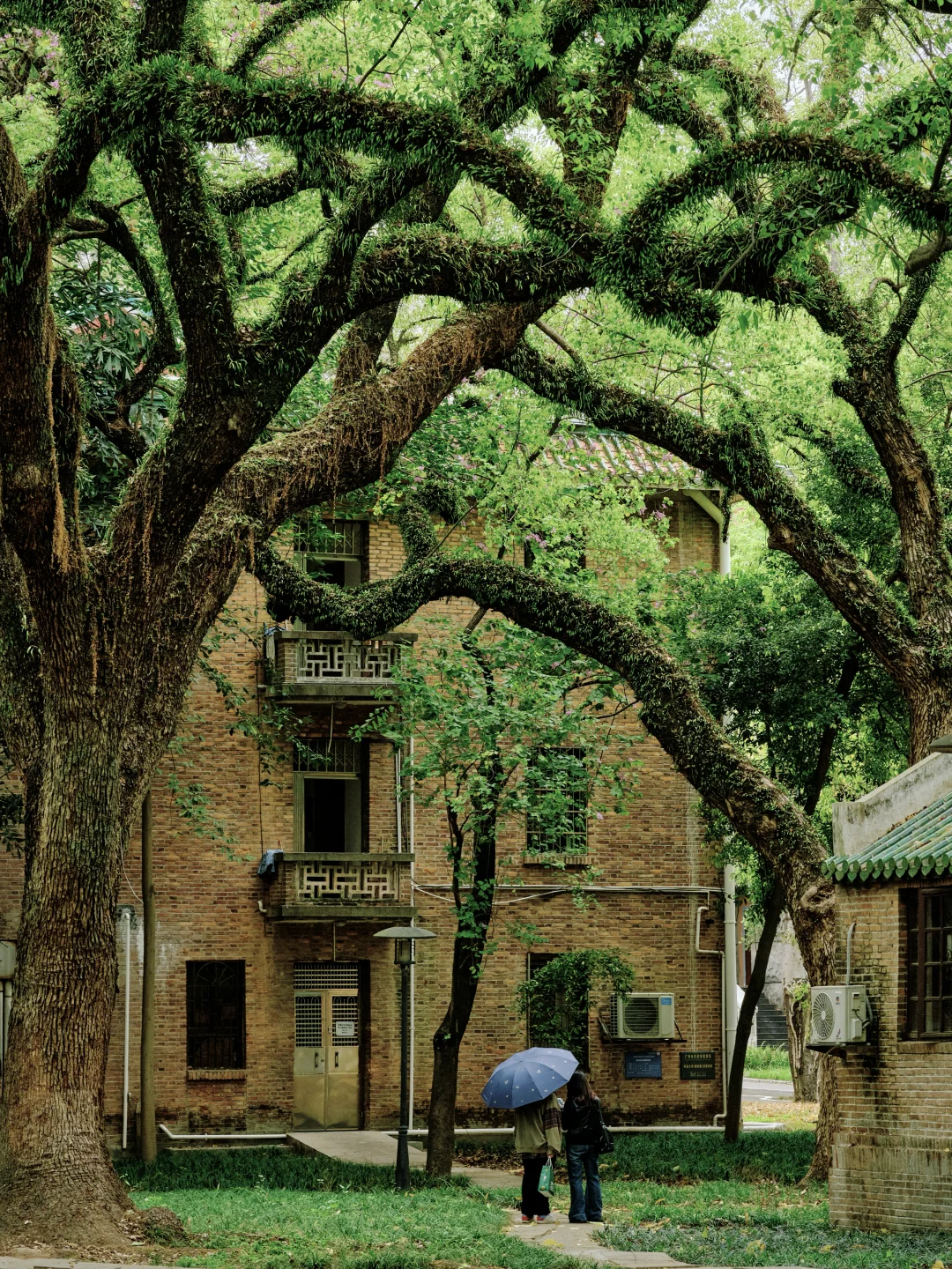 果你也喜欢古树的生命力,那么一定不要错过这里,在百年学府的枝桠间,邂逅野蛮生长的春天,巨树枝干如龙蛇盘踞,藤蔓在树缝里生根发芽,走在路上都能感受到春日的蓬勃生命力