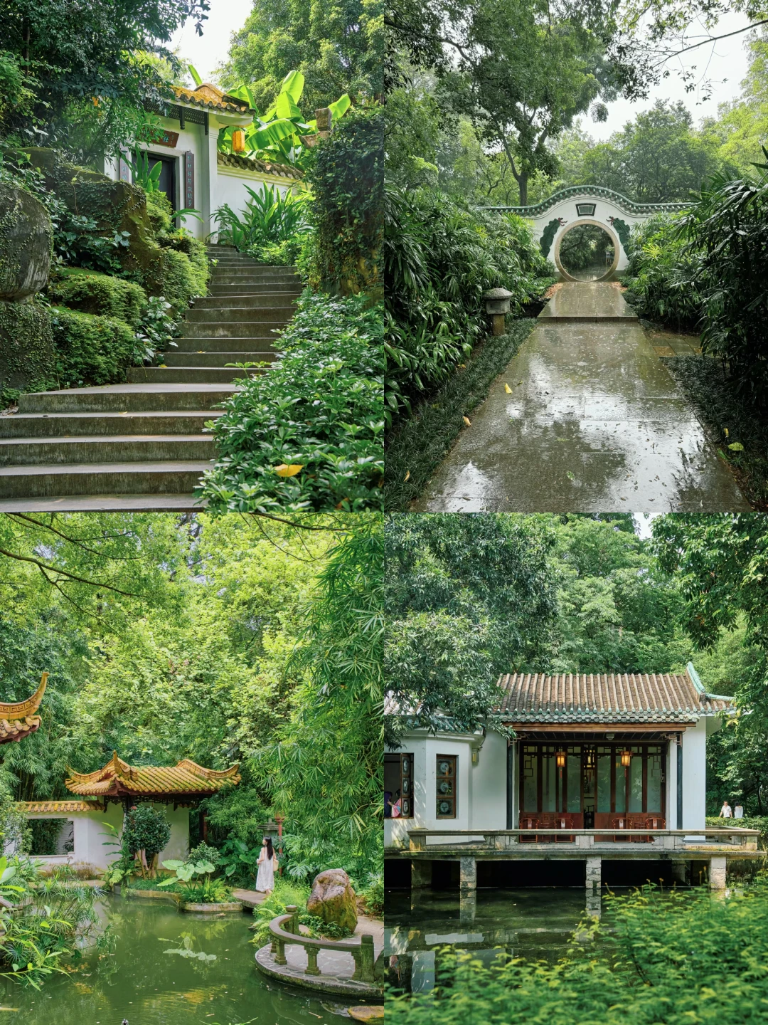 雨天的兰圃直接美成水墨画,青砖黛瓦、小桥流水、曲径通幽,每一处都透着岭南园林的雅致。古风氛围感直接拉满,仿佛一秒穿越到江南,枕雨听竹,静赏清欢