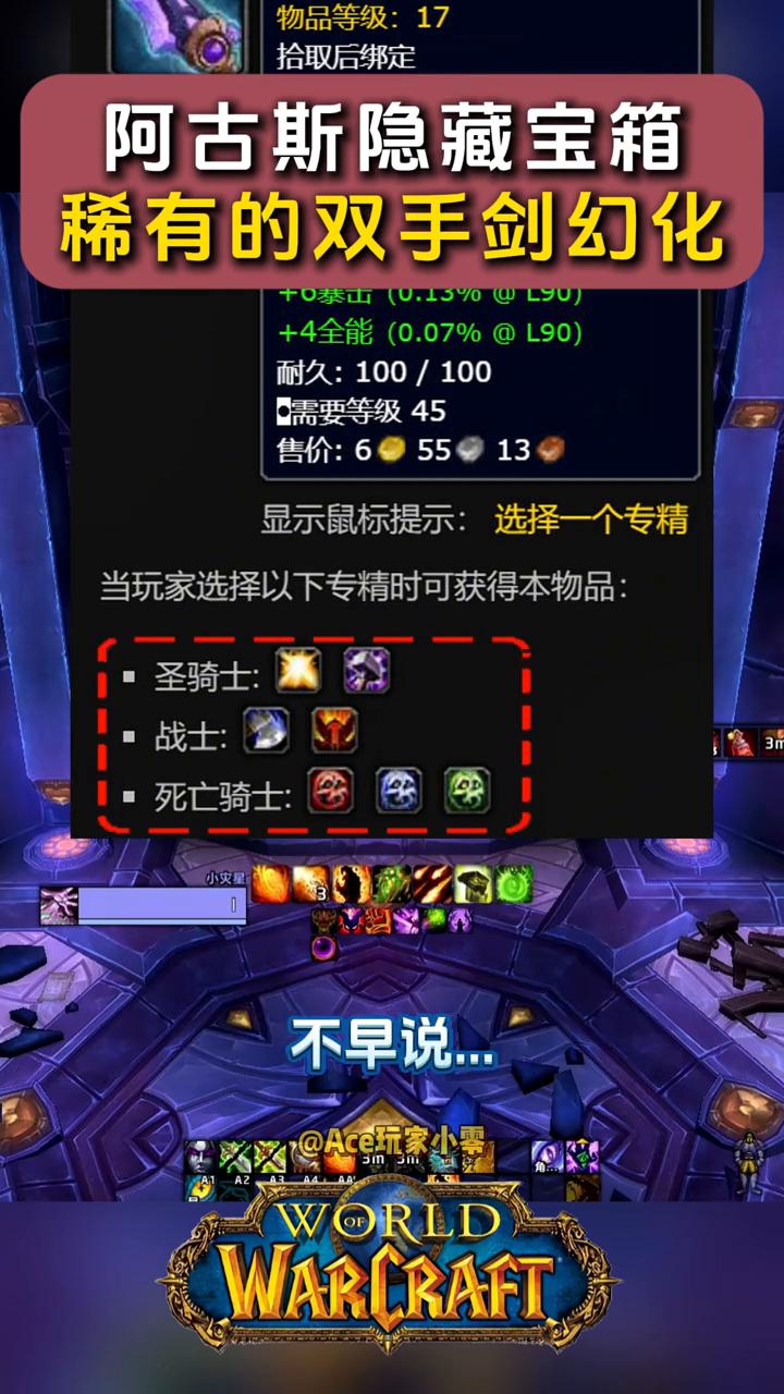 阿古斯隐藏宝箱:稀有的双手剑幻化。 看到这个洞穴了么?据说里面有个大宝箱能开出一把超帅的双手剑幻化,它位于阿古斯艾瑞达斯的43、54。这宝箱看似很容易拿到,但是小零还是花了不少功夫的。 看看剑到底长什么样。剑呢?只有能拿双手剑的职业才能开出来。不早说,怎么说呢?算中规中矩。