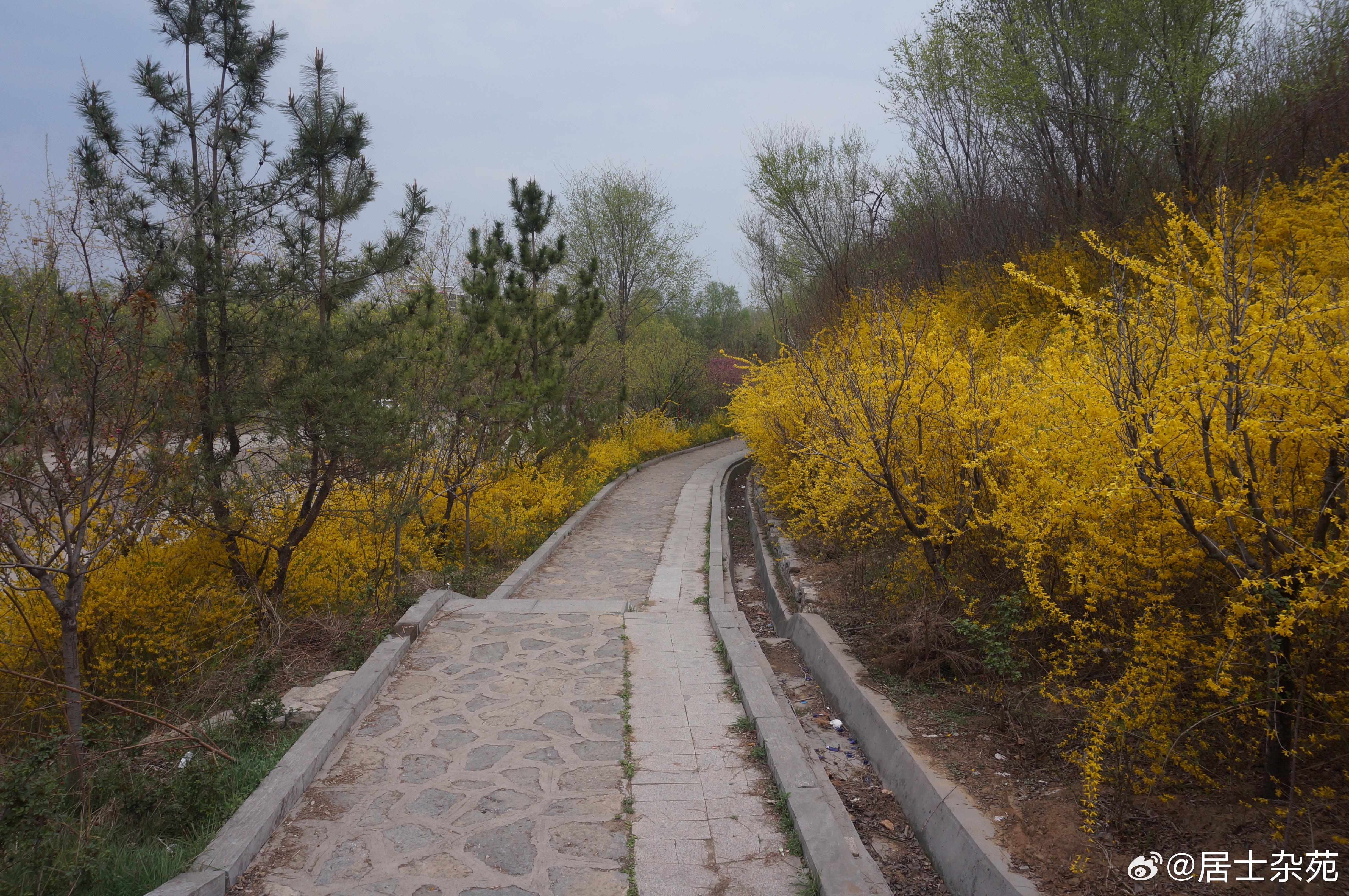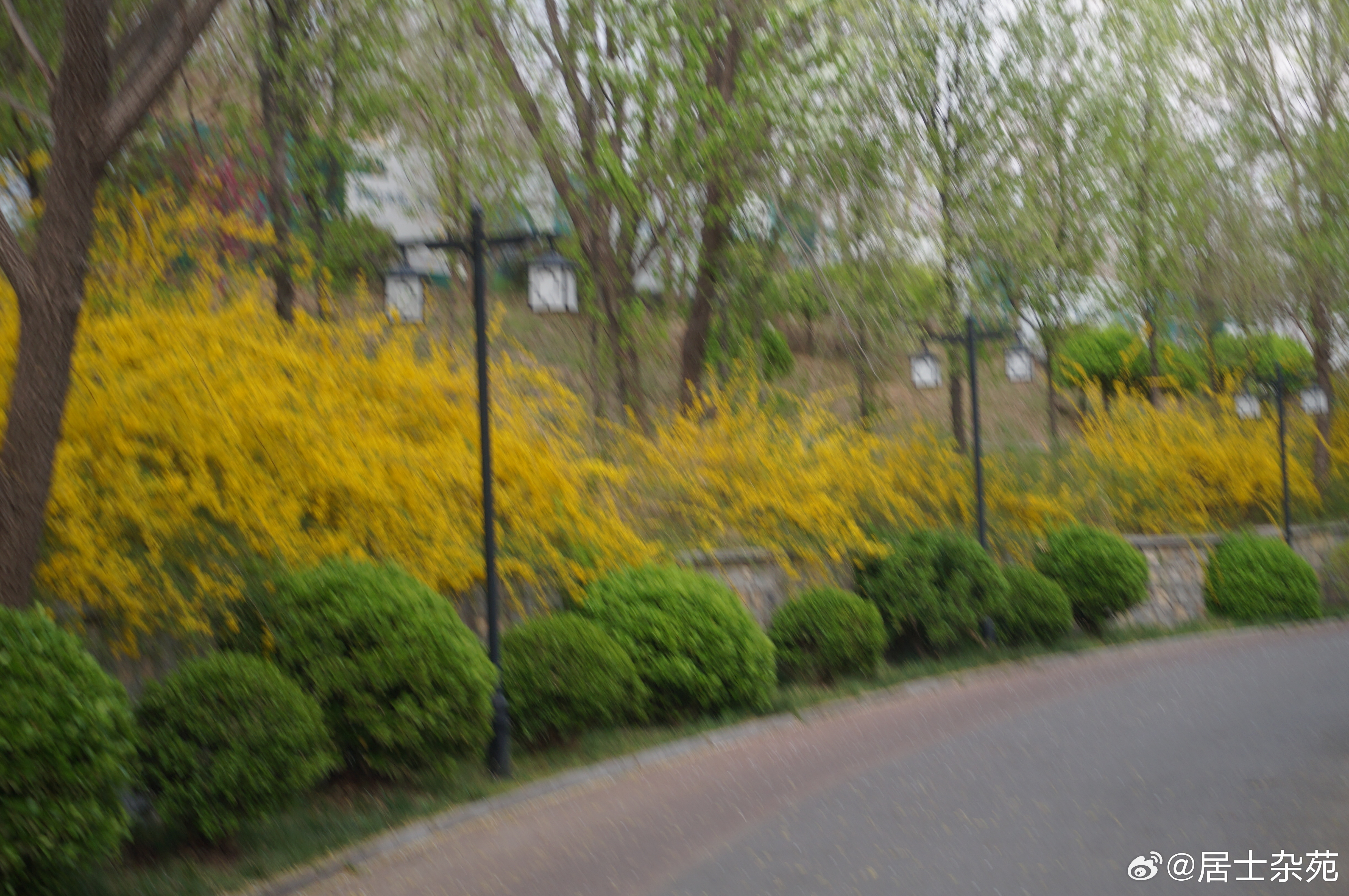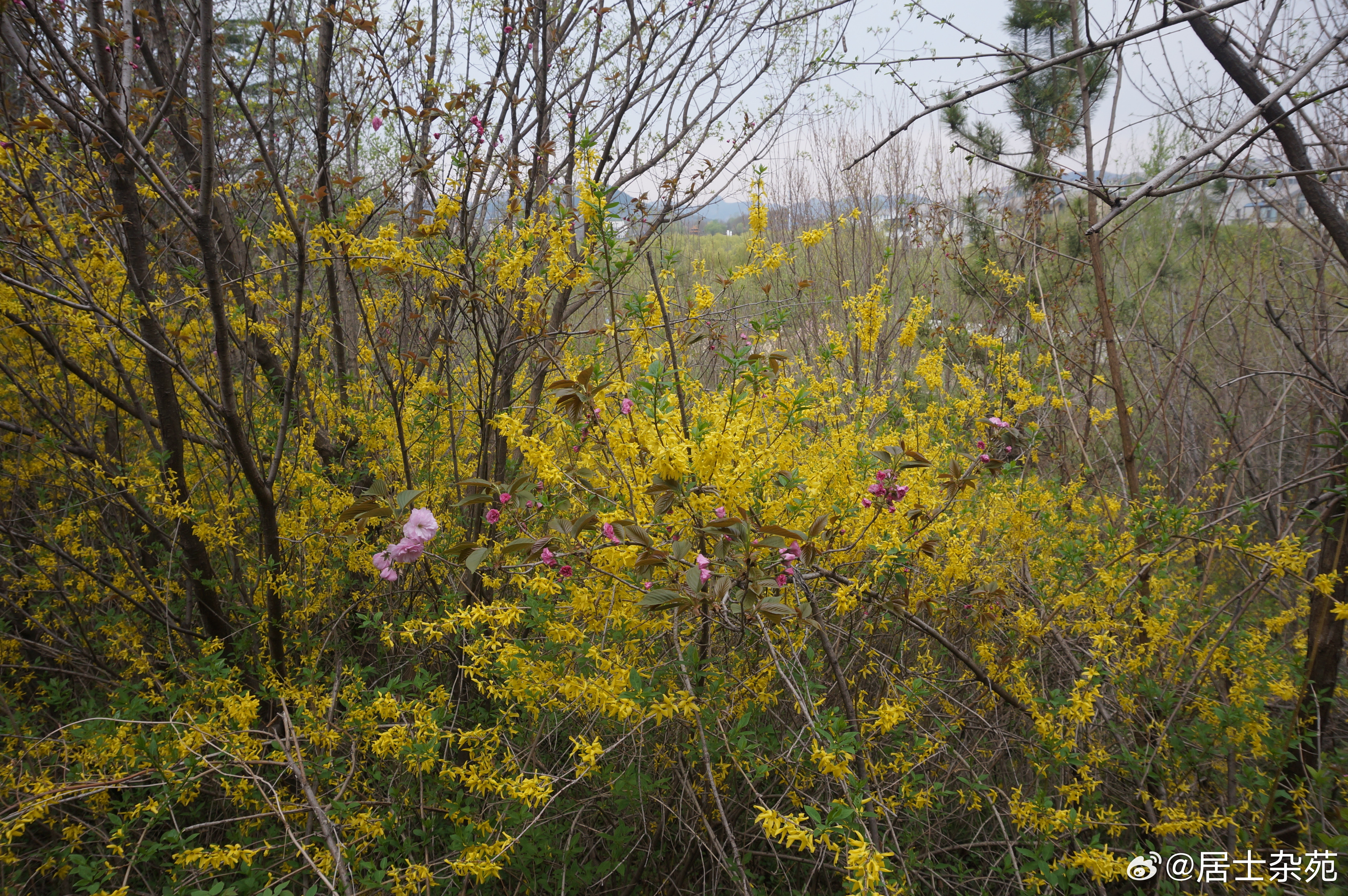 王府街道富贵养生苑的连翘依然处于盛开期。 青州·富贵养生苑