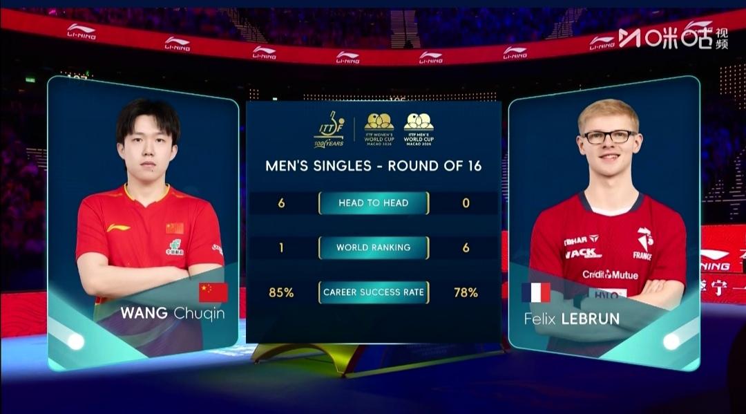 王楚钦独守阵地,4:2胜法国小勒布伦,晋级男单八强! 澳门世界杯1/4区男单1/8决赛,王楚钦迎战法国小将F•勒布伦。 这是在国乒男队5人参赛,仅王楚钦和温瑞博晋级16强。 而下午3/4区1/8决赛中,温瑞博又1:4不敌中国台北林昀儒。 下半区男队失守! 王楚钦千斤重担一肩挑! 第1局,局初王楚钦领先,6平,9平,10平,11-13告负。 第2局,大头2-7落后,追至5-7,打停小布,9平,11-9扳回比分。 第3局,大头又是2-6落后,追至9-10,9-11又丢1局。 第4局,是大头开局改观的一局! 3平后,一直领先到10-4局点,11-5扳平比分。 第5局,2平,6平,大头连得5分,11-6再下一城。 第6局,大头5-1领先,5-3暂停。9-6领先,被追10平。大头技高一筹15-13锁定胜局。 王楚钦4:2(11-13;11-9;9-11;11-5;11-6;15-13)胜法国菲利克斯•勒布伦。 王楚钦七连胜法国菲利克斯•勒布伦! 1/4决赛 王楚钦Vs斯洛文尼亚达科•约奇克