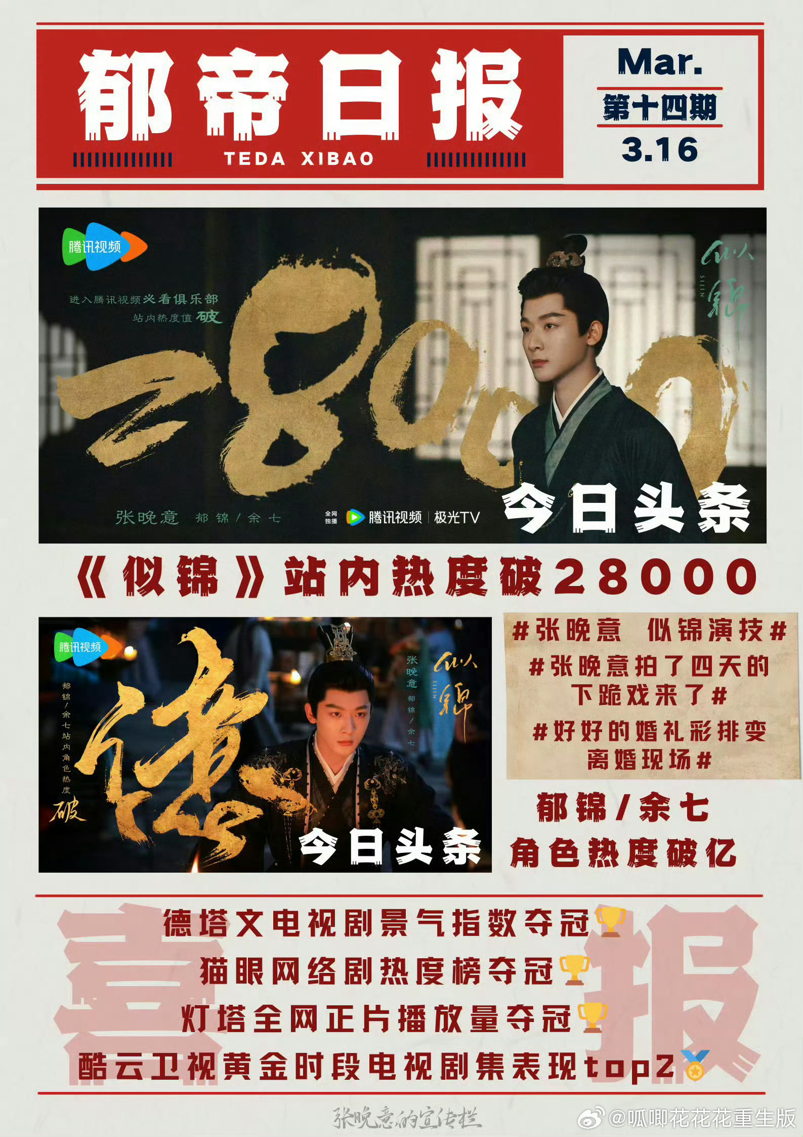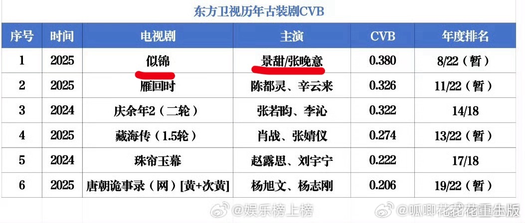晚意《似锦》28000的含金量!!!全网500热搜,破28000时都只有2万多云包场,站内固屏几乎没有,上线16天郁锦角色热度破1亿,东方卫视历年古装剧CVB第一🏆2025东方卫视黄金时段电视剧收视率TOP2泰国TrueID平台2025年度中国剧集TOP1!
