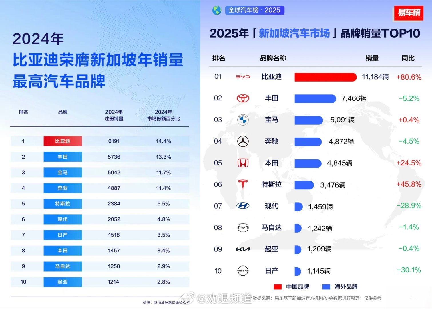 对比亚迪来说,出海大卖跟玩儿似的。就比如新加坡,乘用车去年卖了11184台,已经连续两年销量总冠军。不光乘用车卖得好,商用车更厉害,电动巴士用超六成的市占率稳居第一,电动卡车五年累计注册量也是第一。