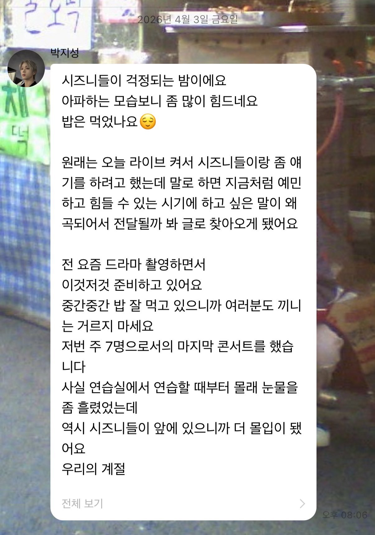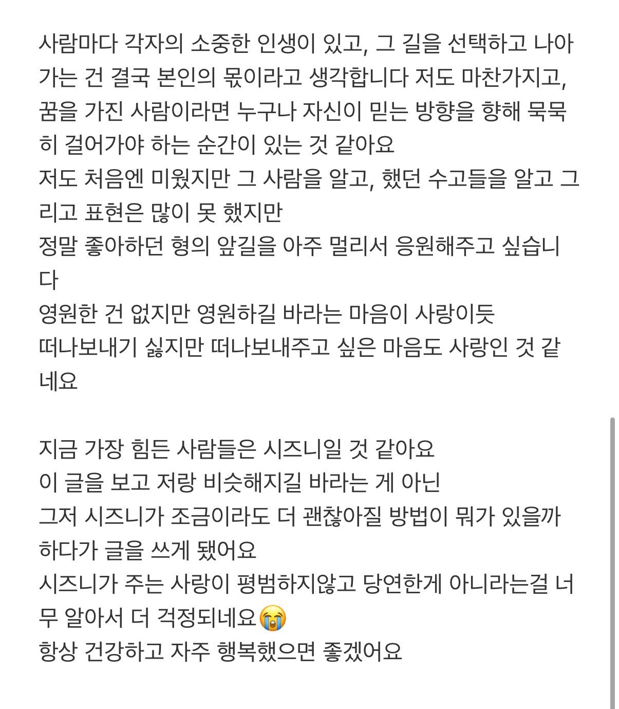 我原本想今天直播和西珍妮们聊一会儿,但我担心如果在这种敏感而艰难的时期开口说话,想说的话可能会被曲解地传达,所以决定改成文字来找大家了。