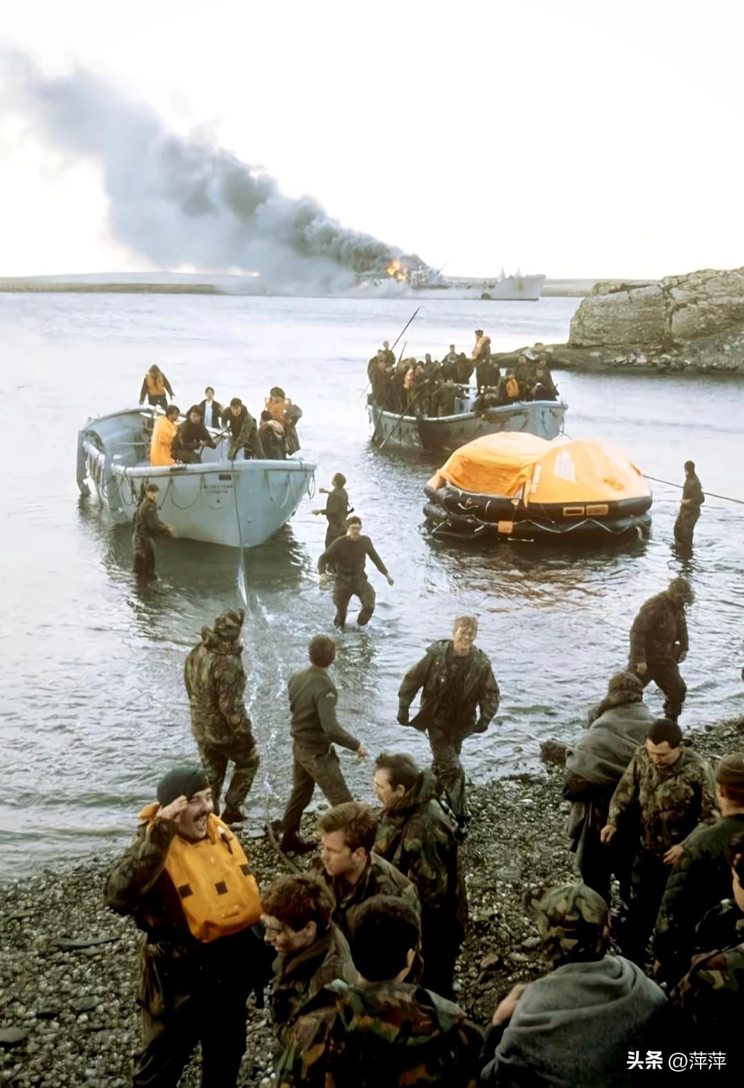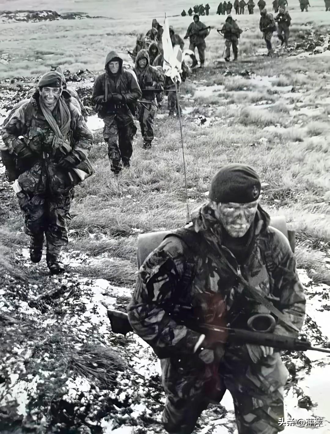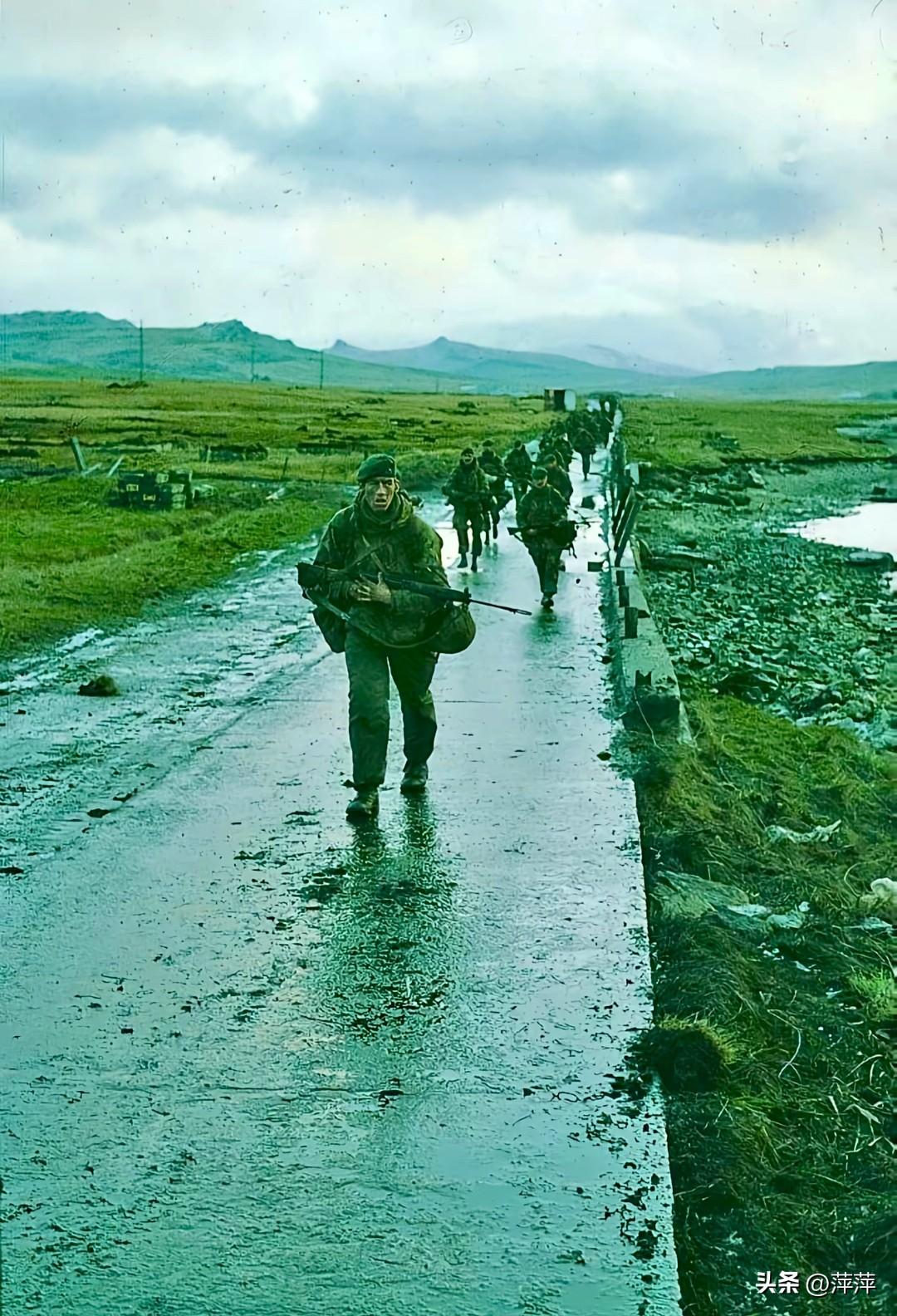 这组照片定格了1982年英阿马岛战争的震撼全程:英军在圣卡洛斯湾登陆,从被击沉的舰船上撤离,在冰原泥泞中徒步行军,向斯坦利港推进。在南半球冬季的极端环境下,英军以弱胜强,最终收复马岛。这场战争彻底改写现代海战规则,成为冷战时期最具标志性的局部战争之一。