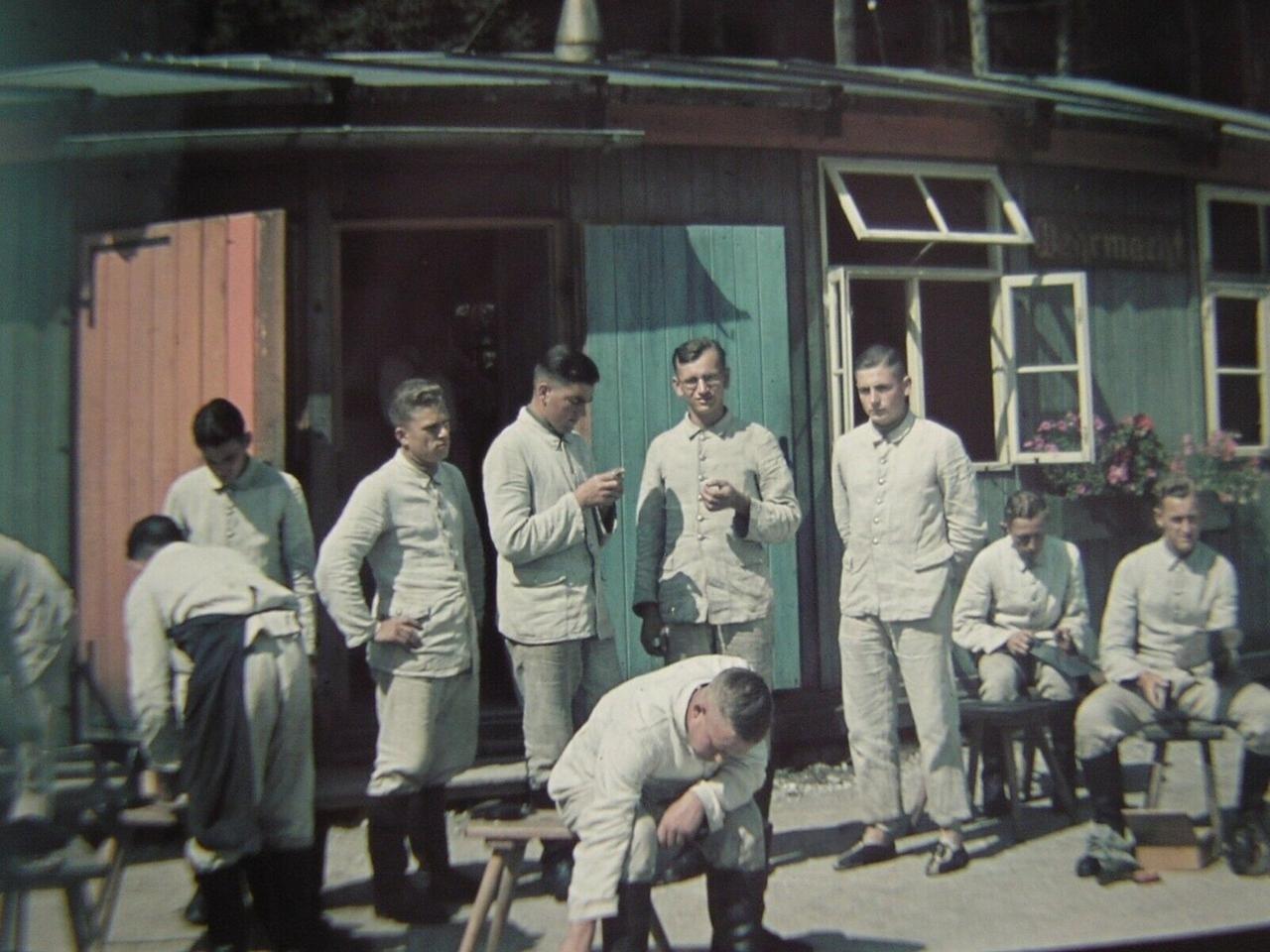这组照片出自一名 ** 帝国劳动服务队(RAD)** 士兵的相册。该组织是二战德国的准军事劳动组织,成员在正式入伍参军前,需要先完成为期六个月的强制劳役。照片记录了他们服役期间的日常,也从侧面反映出当时德国在战前和战时的人员动员体系,以及普通青年在被征召入伍前的生活状态。