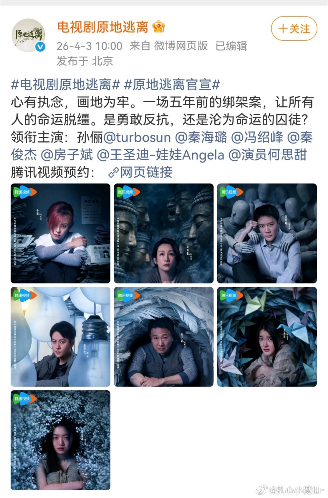 好久没见过这种一行官宣的剧了电视剧《原地逃离》好直白简单又直观的官宣的方式,直接一行官宣完,实力派就是有底气!该剧改编自李大发同名悬疑小说,由正午阳光、腾讯视频联合出品!孙俪新剧就这样官宣了