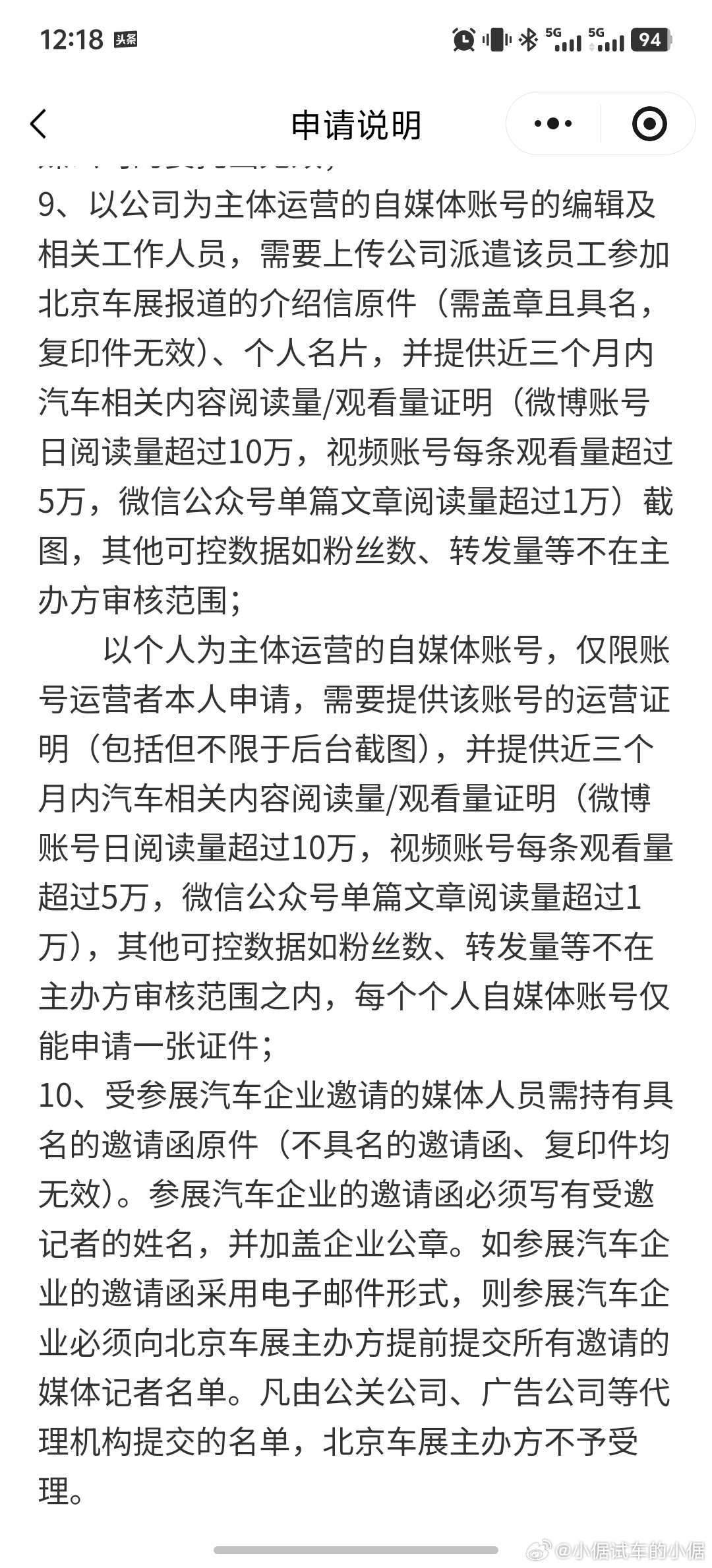 今年北京车展要求申请媒体证的自媒体,出示汽车相关内容的观看量证明,要求近三个月:
