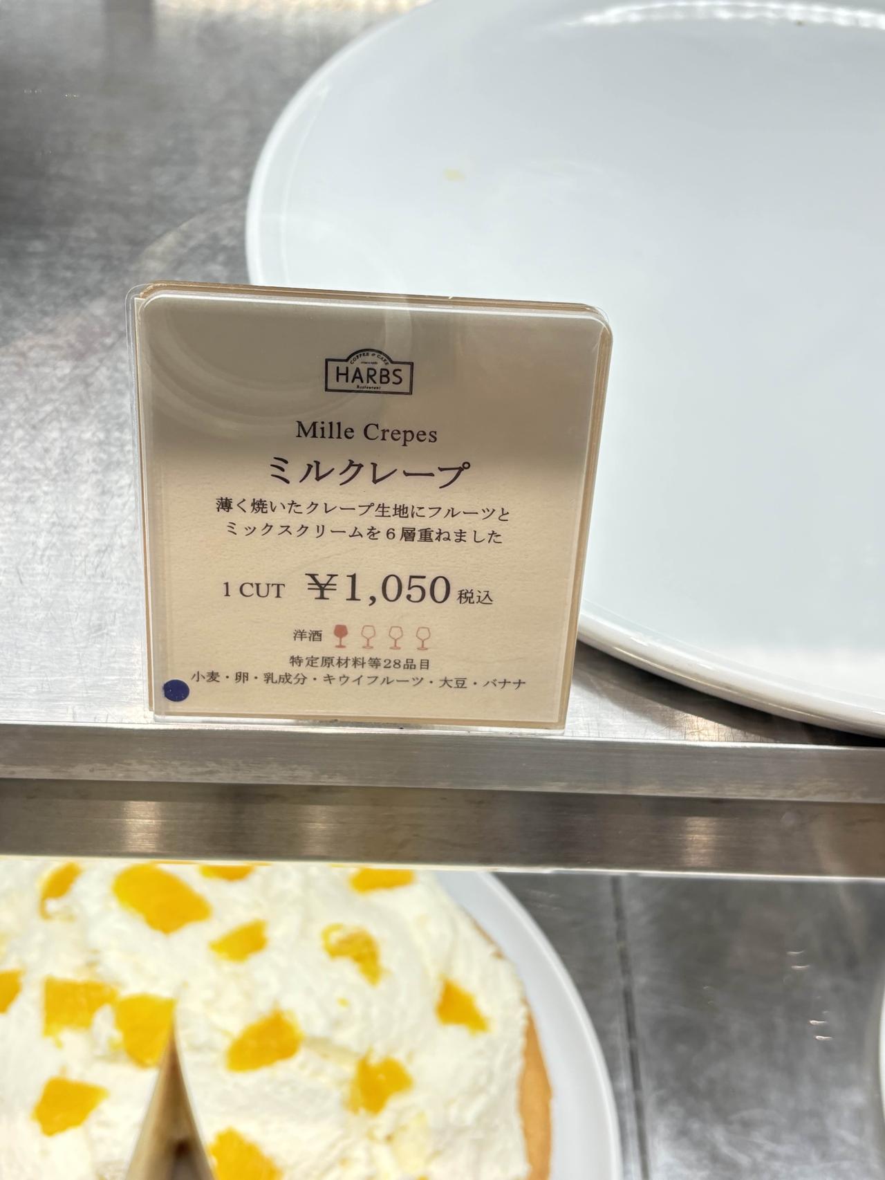 ¥880)和千层可丽饼❎ミルクレープ¥1050)。 昨天下午2点多路过这家蛋糕店(HARBS),柜台里空空荡荡,买了个精光。好奇心让我在柜台前多看了两眼,正好送货的来了。于是,一群看热闹的就开始排起了长队。