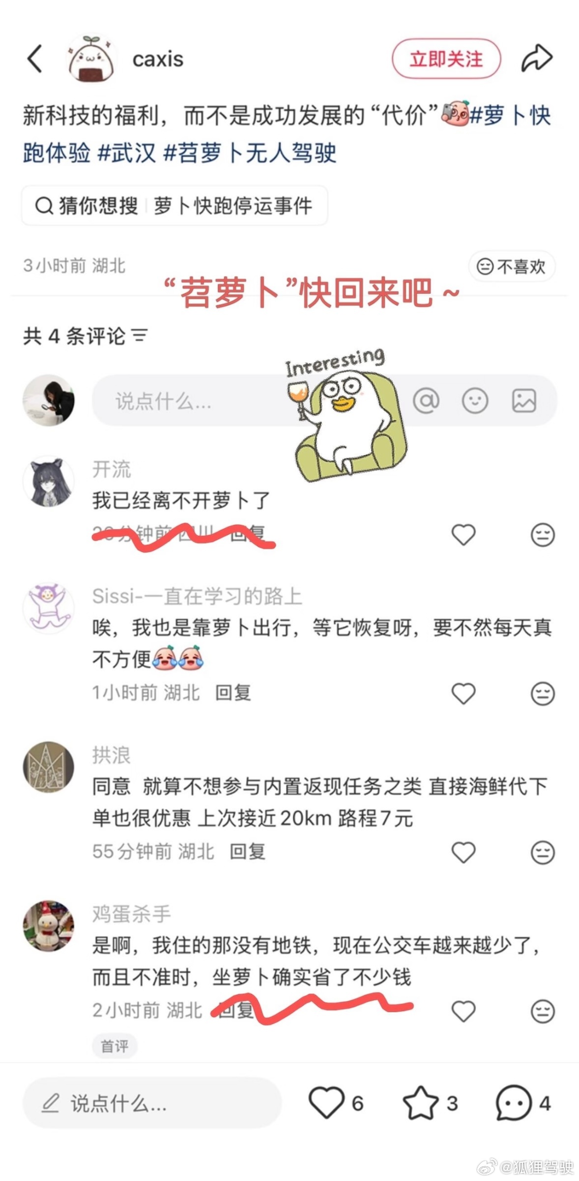 这次突然停运了几天,满屏都在喊“苕萝卜快回来”。看了几条,还挺真心的。怎么说呢,一个东西从慢吞吞被嫌弃,到变成出行里少不了的一份子,算是武汉人民看着长大的吧。少了它通勤确实麻烦不少。一开始觉得有点夸张,后来想想,也正常。