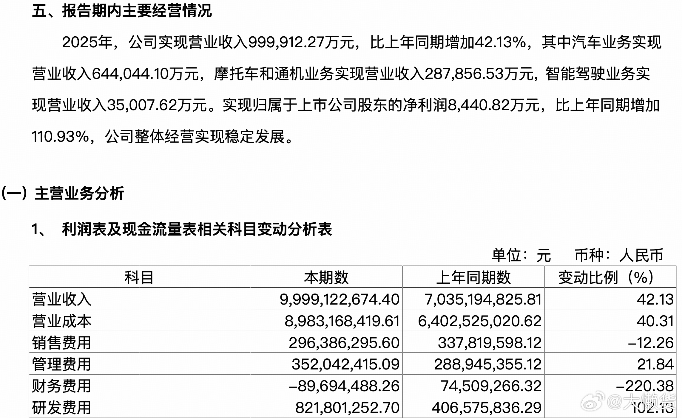 全年营收99.99亿元,同比增长42.13%,归母净利润0.84亿元直接翻番,研发费用也翻倍至8.22亿元,实打实的增收又增利,AI+车的转型算是真正破局了