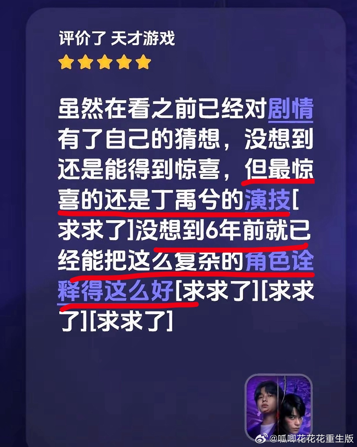 小丁《天才游戏》看完真的好多好评,六年前的小丁就已经这么会演了,无论是以前,现在,你都很努力很棒,看完了谁都会短暂走不出来!!!