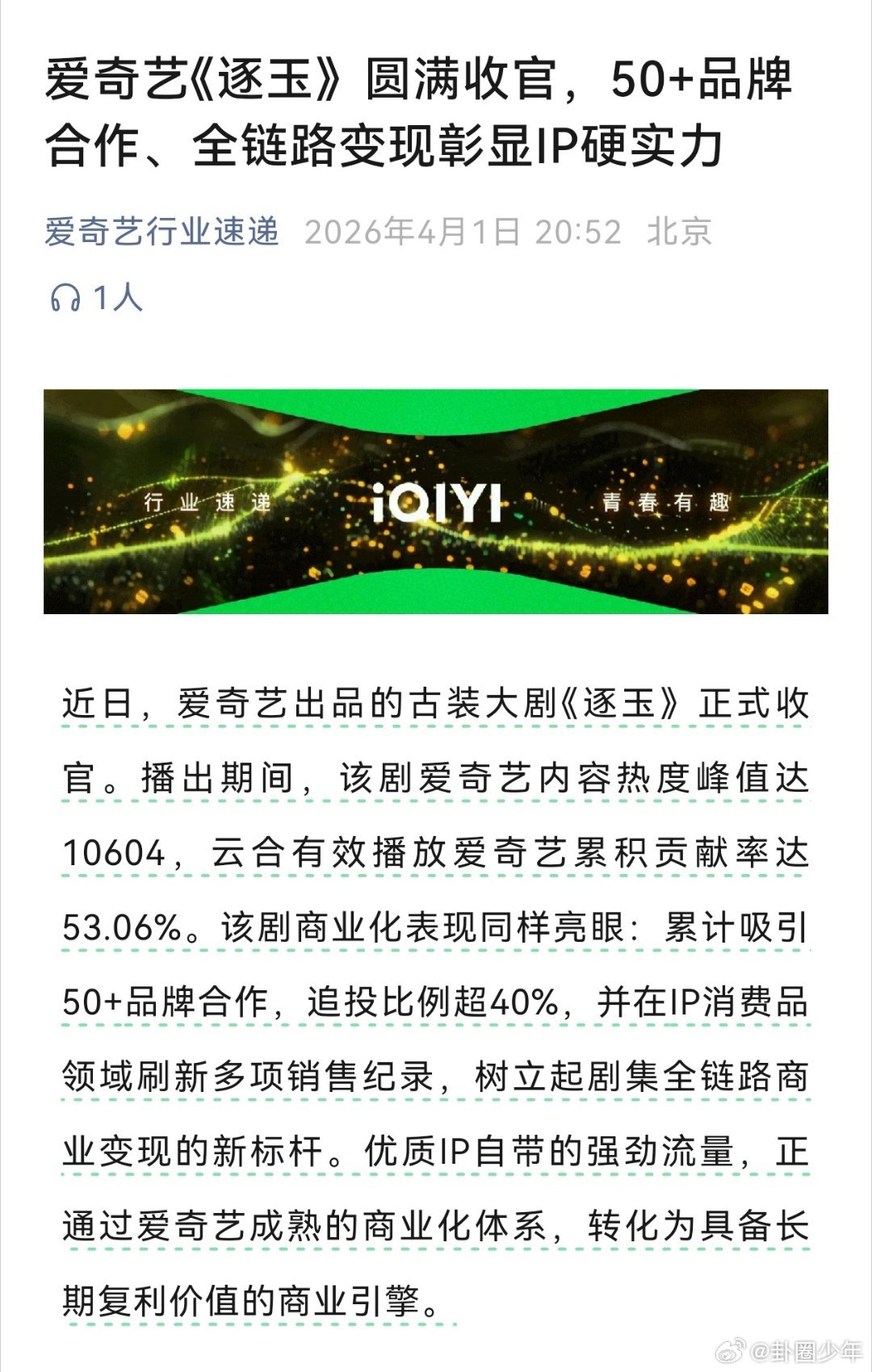 逐玉全链路变现彰显IP硬实力张凌赫田曦薇逐玉圆满收官热度一路领跑,商业价值拉满,