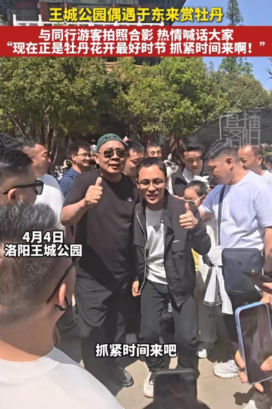 于东来现在活得真潇洒,清明节又跑到洛阳,看牡丹去了,风和日丽,一身休闲打扮,北面短袖,一副墨镜,只是这帽子颜色,好像不太对! 与众人欢声笑语拍照,宣传洛阳牡丹,不过确实很美,有古诗云:唯有牡丹真国色,花开时节动京城!洛阳六朝古都,不就是公认的京城吗,作为河南人,于东来一是游玩,二是为家乡捧场! 前几天于东来拜访长城老总魏建军,一次性买了20辆坦克700,二人吃喝聊,相处得很开心,现在于东来退休了,反正就是想着法到处玩!