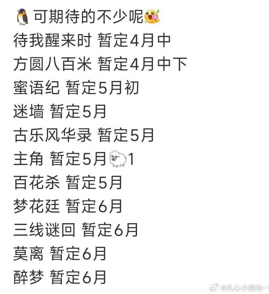 🐧🥝👖🥭四大平台排播,有你想看的吗?曝四大平台近期排播