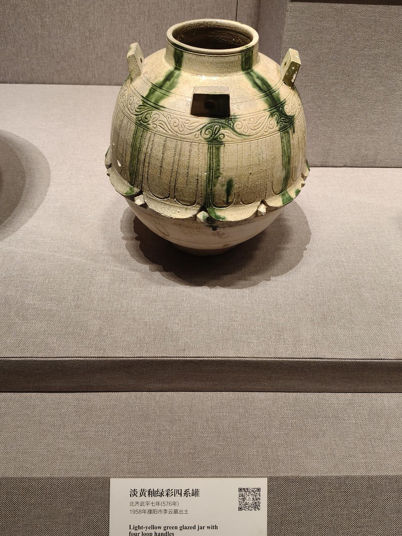 北齐淡黄绿釉四系罐,接近白釉!瓷器 收藏