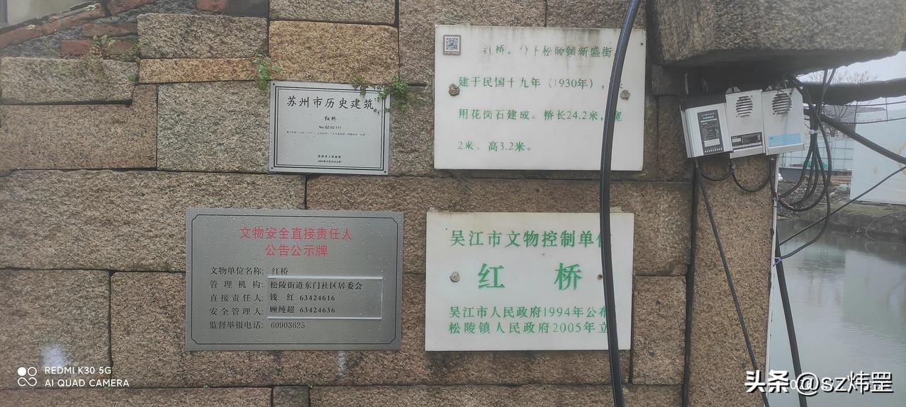 (原创)雨中红桥 一周前,朋友约了去盛家厍逛逛。 昨天下雨,不知能否成行,电话联系,回复:老街就得雨中游,这才有味。 九点不到,车早在楼下,是辆七座旅行 车,已有五位。 上车朋友即言明:盛家厍街区已改,就转转,今天重点看三桥。 ?、?、?、!、!、! 三桥?去同里? 不是!去看松陵三桥!正确的说法是盛家厍三桥! 对!盛家厍有三桥:南大门为红桥(也叫虹桥)、中间是泰安桥、落北为垂虹桥,现为断桥。 红桥,始建于明代,最初是木桥,称虹桥。后石砌俗写成“红桥”,原因是桥身曾髹红漆。 红桥跨红桥河(吴家港), 现在的桥是民国石梁桥。 民国十九年(1930) 乡绅集资重建,以花岗石建成三孔平梁桥。尺寸为:长 24.2米、宽 2米、高 3.2米。 红桥在1994年列为吴江市文物控制单位,如今是苏州市控制保护建筑。 桥南北两侧均有桥联: 南桥联上联为陆龟蒙(甫里先生)松陵养鸭典故:春日几家还放鸭; 下联则是张翰(吴江人)秋风思莼鲈典故:秋风何处不思莼。 北桥联早年已被水泥涂没,文字无存、无法读取,至今未查得完整记载。 明代起,盛家厍即为古镇商贸门户,运河和太湖的商船都停靠于此,也成了货物集散处。 明清至民国,盛家厍即为松陵三大镇(松陵、笠泽、盛厍)之一。 不长的盛家厍,两边有商铺百余家,红桥是进出城南的要道。 因住在阁老厅,往北是没啥可玩,唯有去老街,加上当时的盛家厍东和红桥南都是农田,又因那红桥是平板桥,还不高,便于我们冲冲奔奔。 桥上的铁栏杆也为我们的冲奔起到了保护作用。 那时拿着自制红缨枪,提着木头大关刀,劲头不亚于敌后武工队,向东冲过平桥,向南奔过土堤,都是直插田里。 玩的尽兴,玩得开心,只是身上脚上都是泥土,回来少不了挨父母一顿骂。 一日又去,冲杀回来,见大院的众家好婆买菜回来,见到我们,笑兮兮又神秘兮兮地说:夜快(吴语:傍晚)阿想听故事? 文艺和娱乐贫乏的岁月,故事是吸引人的。 吃了晚饭,齐聚众家好婆那。 众家好婆的故事开始了:红桥那,有落水鬼,特别是阴雨天,还有就是早浪(吴语:早上、清晨)和夜快,若小朋友去那,或者是落单人走过,水里就会伸出一只手来,向你招呼,而人一旦看见,魂就被招去了,会顺着那手自动往水里走……。所以啊,以后去玩,不要过红桥,也不要往南走。 故事不长,震撼很大,尽管都在一个大院,大伙回家都是一步一回头,担心啊。 从那天后,再去盛家厍,尽管仍是活力十足,左冲右突,可一到红桥那,再没人去向东面,也没人再往南跑,就像听到金鸣,收兵,打道回府。 因为大伙虽嘴上不说,但从心底都怕那突然从水中伸出来的手。 今天又是阴雨,重走红桥,想起众家好婆的故事,猛然醒悟:当年众家好婆编故事是为了我们这些小孩安全。 202604041500