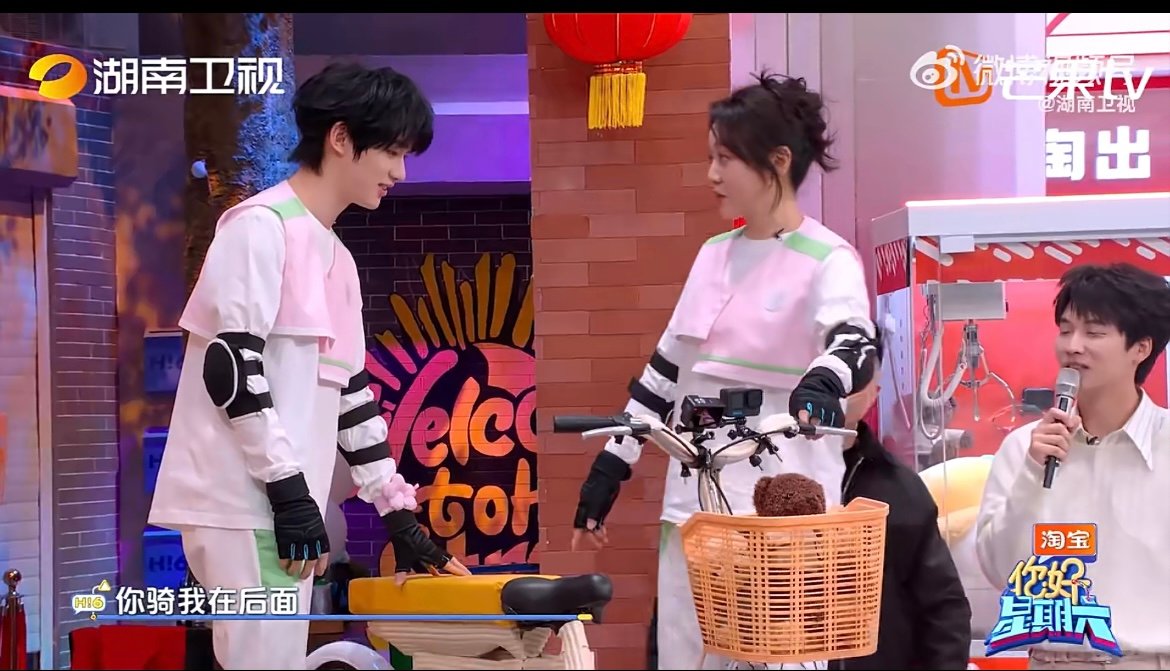丁程鑫又调皮了 明明知道闫妮不会骑车,还故意逗姐姐要试一试,调皮小表情真的太可爱了。你好星期六