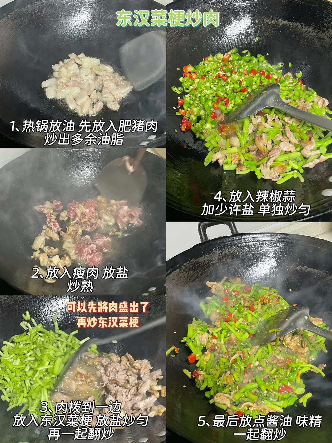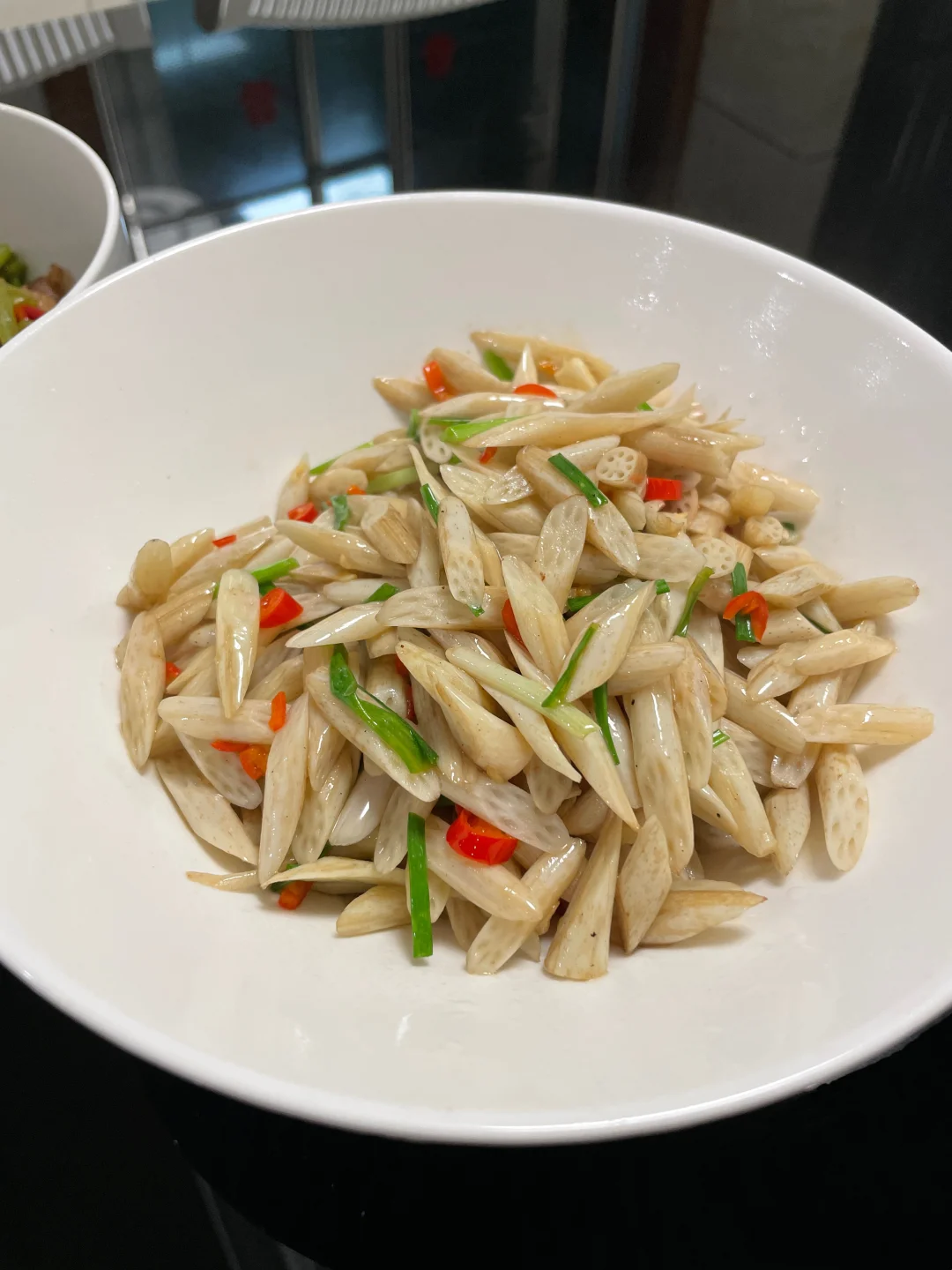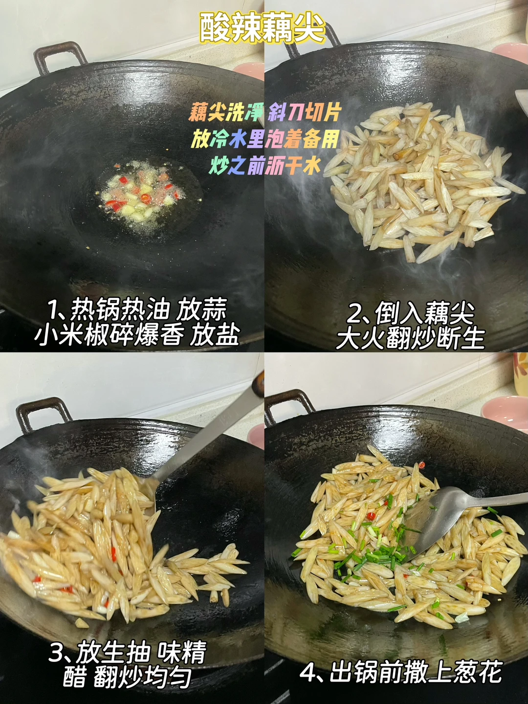 今日菜谱[庆祝R] 东汉菜梗炒肉 清炒蕨菜 酸辣藕尖