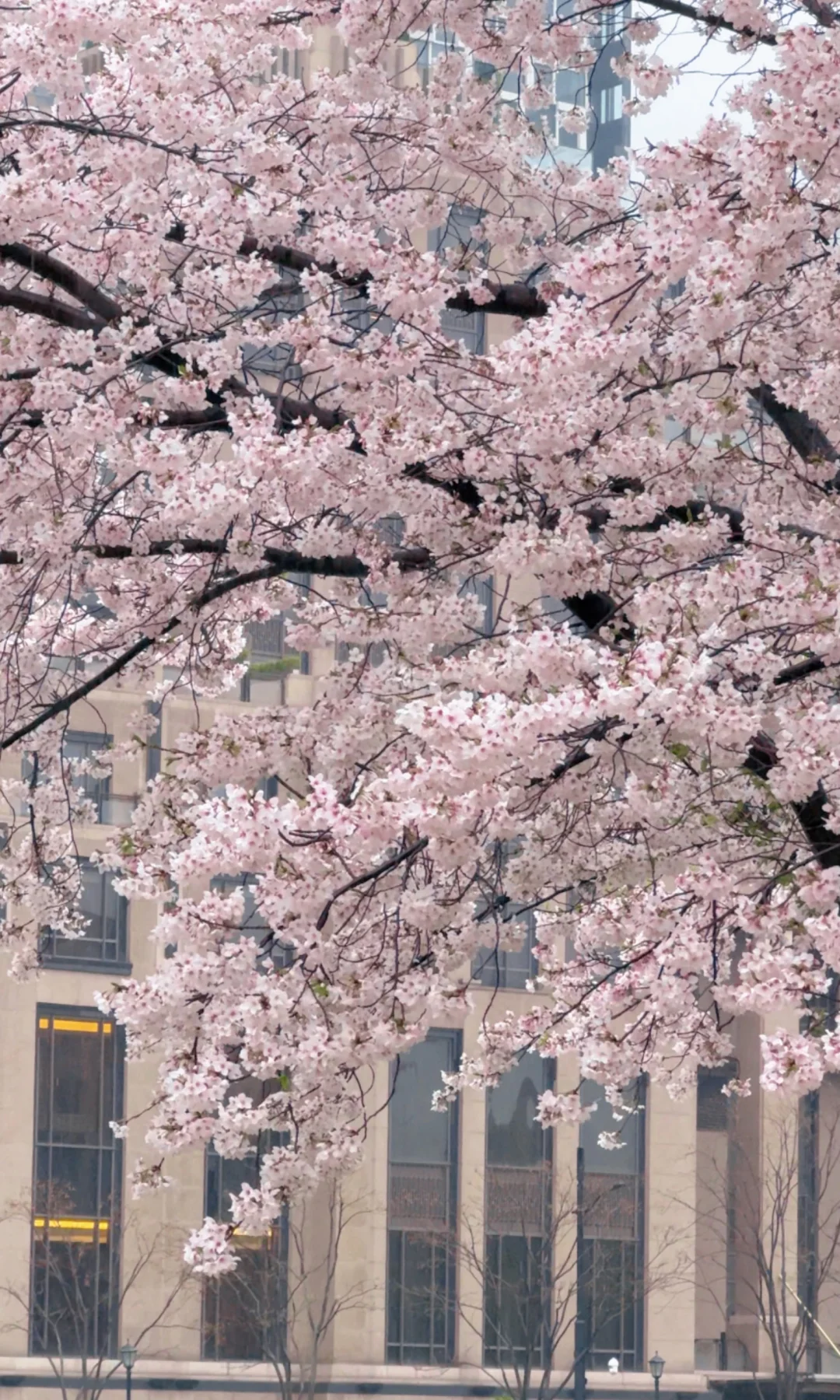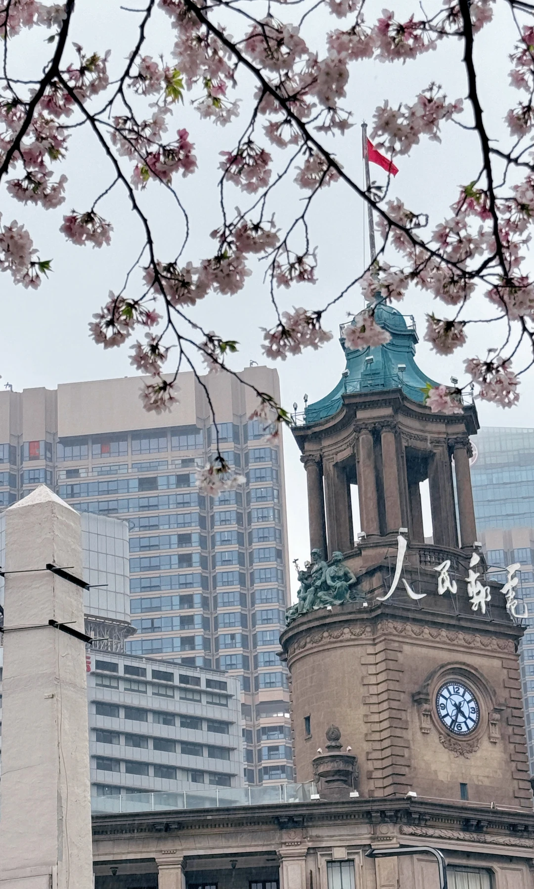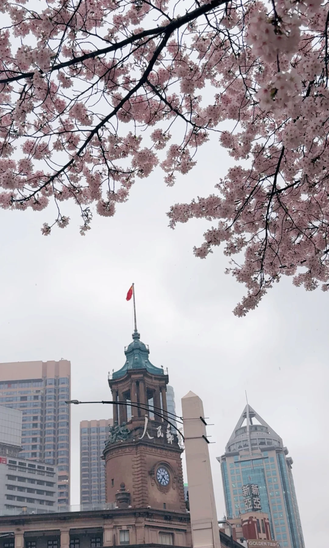 仰拍樱花+邮政博物馆同框