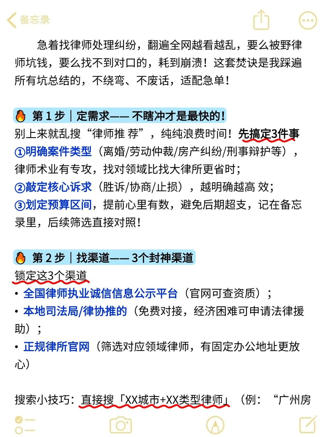 家人们谁懂啊😭 急着找律师处理纠纷,翻遍全网越看越乱,要么被野律师坑钱,要么找不到对口的,耗到崩溃!这套焚诀是我踩遍所有坑总结的,不绕弯、不废话,适配急单! 因字数有限,具体内容请看👀【图片】