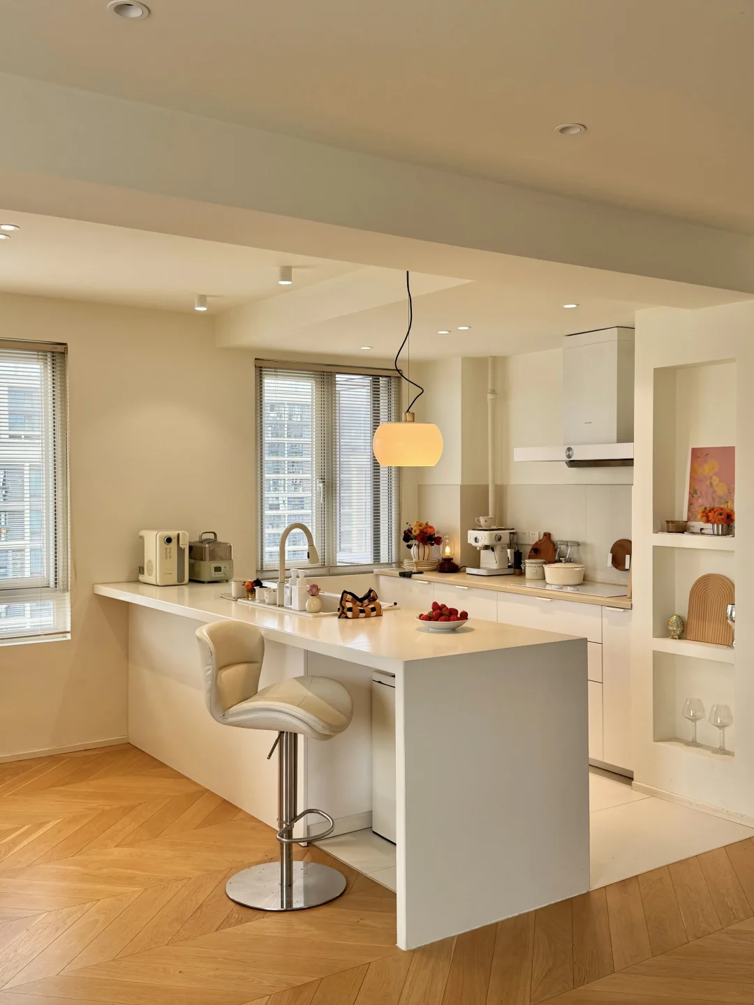 贝母白的金属面板,和我的白色系厨房很搭