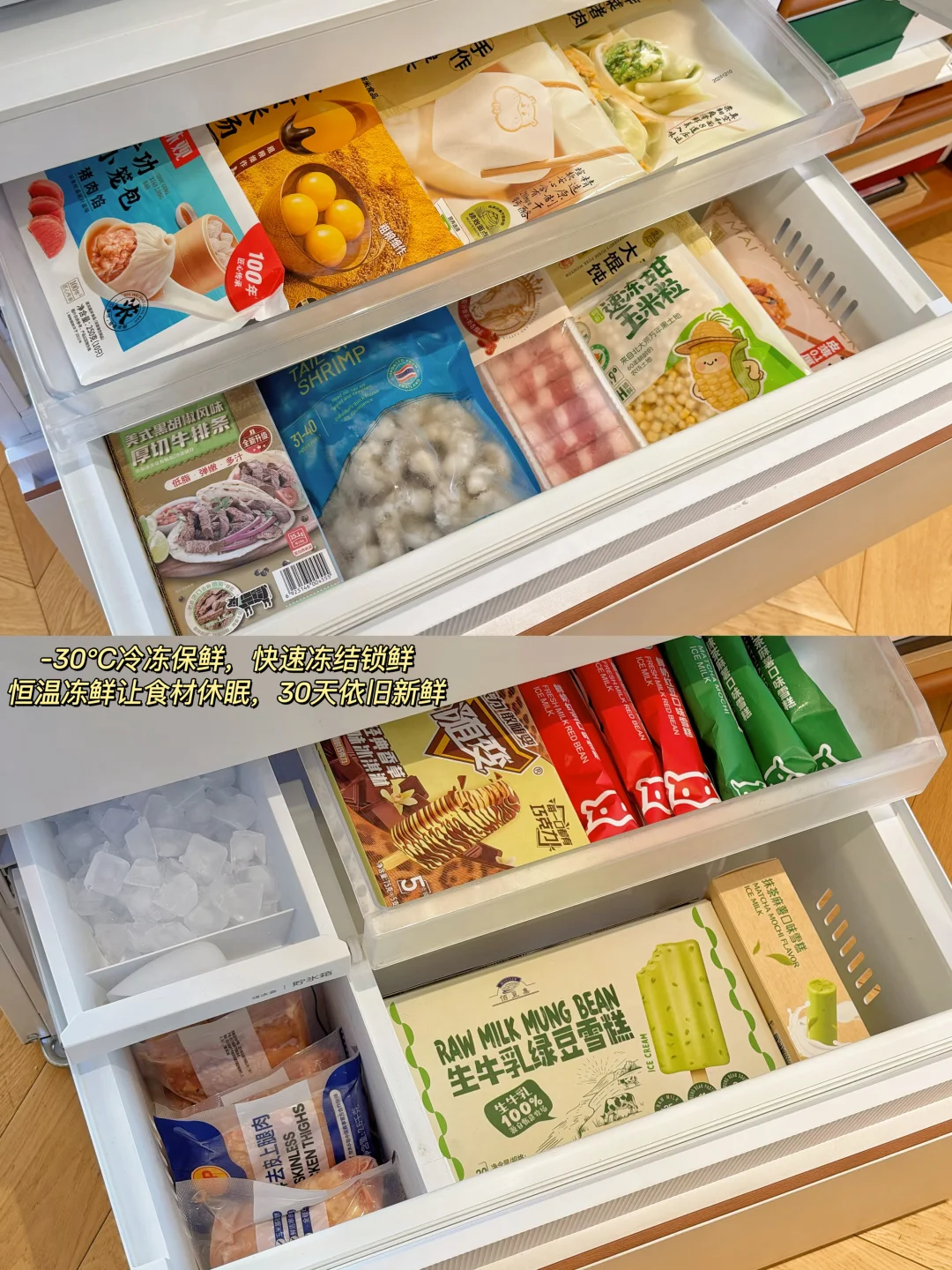 冷冻区两个分层大抽屉,抽拉拿取很方便