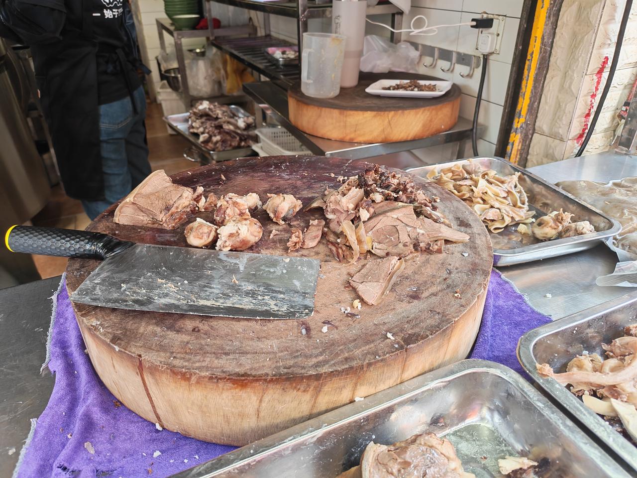 六盘水羊肉米线馆的羊肉大多采用机切,薄得如纸,一碗米线,羊肉只有薄薄的四五片。可昆明彖新农贸市场的某家羊肉米线,一直采用手工切肉,实属难得。这家羊肉米线使用的羊肉都是会泽黑山羊,每次去吃米线,我都要两碗加韭菜的羊肉汤!(店名就不说了,自己去找!)