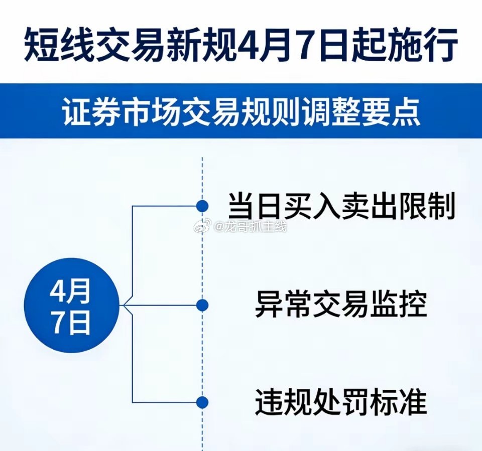 证监会发布的《关于短线交易监管的若干规定》将于 2026年4月7日(下周二) 正式施行。新规旨在细化认定标准,主要针对上市公司“关键少数”,不限制普通散户的日常交易。🎯 新规核心要点速览监管维度 具体规定监管对象 5%以上大股东、董监高(含其配偶、子女等亲属账户),普通投资者不受限 时间红线 6个月内反向操作(买后卖或卖后买)即违规标的范围 股票、存托凭证、可转债、可交债等股权性质证券 时点认定 统一按证券过户登记日计算,非交易成交日⚠️ 关键调整与影响1. 堵漏“绕道”工具:明确将可转债、可交债等衍生品纳入监管,防止通过工具转换规避限制 。2. 明确豁免情形:列出13类豁免行为,包括ETF申赎、股权激励行权、司法强制执行等,但若利用信息优势谋利则不豁免 。3. 便利机构资金:对社保、公募基金等按产品组合单独计算持股,鼓励中长期资金入市 。💡 对你(散户)的影响* 无影响:如果你不是上市公司大股东或高管,你的短线交易、波段操作完全不受新规约束。* 利好:新规通过规范“关键少数”利用信息优势套利,旨在维护市场公平,保护中小投资者利益 。⚠️ 注意:虽然新规不管散户,但仍需遵守现有规则(如T+1、异常交易监控),切勿进行内幕交易或操纵市场。