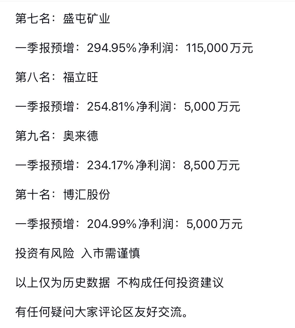 2026年一季报预增前十强的榜单 是一份极具含金量的“成绩单”,它揭示了在宏观经济波动中,哪些细分领域的公司正在经历爆发式增长。 这份榜单最值得关注的不是那些高达几千百分比的增长数字,而是这些数字背后的“含金量”和“持续性”。 榜首的“虚”与“实”:德明利的巨量利润 排名第一的德明利,其5383.14%的预增幅度和36.5亿元的净利润,在榜单中显得鹤立鸡群,甚至与其他公司不在一个数量级。 - 数据异常点分析: 通常来说,存储芯片或科技类公司在周期反转时会有巨大的业绩弹性,但单季度36.5亿的净利润对于大多数非巨头科技公司来说是一个极高的门槛。这个数据极有可能包含了非经常性损益(如资产出售、投资收益等),或者是行业周期反转带来的极端爆发。 - 市场影响: 这种级别的业绩如果属实,将直接引爆存储芯片或半导体板块的行情,成为市场的绝对核心。 医药与科技的“双轮驱动” 除去榜首的异常值,榜单的第二、三名(富祥药业、欧科亿)分别代表了医药和高端制造。 - 富祥药业(3250.01%): 医药股的业绩暴增通常源于重磅单品放量或产能释放。如此高的增幅说明公司基本面发生了质的改变,而非简单的季节性波动。 - 欧科亿(2770.86%): 作为硬质合金刀具企业,其业绩暴增折射出高端制造业的复苏,特别是出口或国产替代逻辑的强化。 “增长质量”的辨析:利润规模的重要性 在分析预增股时,不能只看增长率,更要看利润的绝对规模(含金量)。 - 盛屯矿业(11.5亿): 虽然增长率(294.95%)排名第七,但其11.5亿的净利润规模高居第二。这说明矿业板块(可能是有色金属或新能源金属)正处于价格高位或产能满负荷状态,这种基于大宗商品周期的业绩往往具有更强的趋势性。 - 新锐股份(3.25亿)与华锐精密(1.9亿): 这两家公司的增长都在500%-600%之间,且净利润规模适中,属于典型的“小而美”的高成长制造业,这类公司往往容易受到机构资金的青睐,走势可能更稳健。 总结 这份榜单不仅仅是数字的堆砌,它暗示了2026年一季度的市场主线: 1. 科技硬件(存储/半导体): 德明利的数据暗示了行业景气度的极高爆发。 2. 资源周期: 盛屯矿业代表了上游资源品的强势。 3. 医药反转: 富祥药业代表了超跌后的业绩修复。 投资者在参考此类数据时,应重点甄别业绩增长的来源(是主营业务爆发还是非经常性损益),并结合当时的股价位置进行判断,避免陷入“利好兑现是利空”的陷阱。