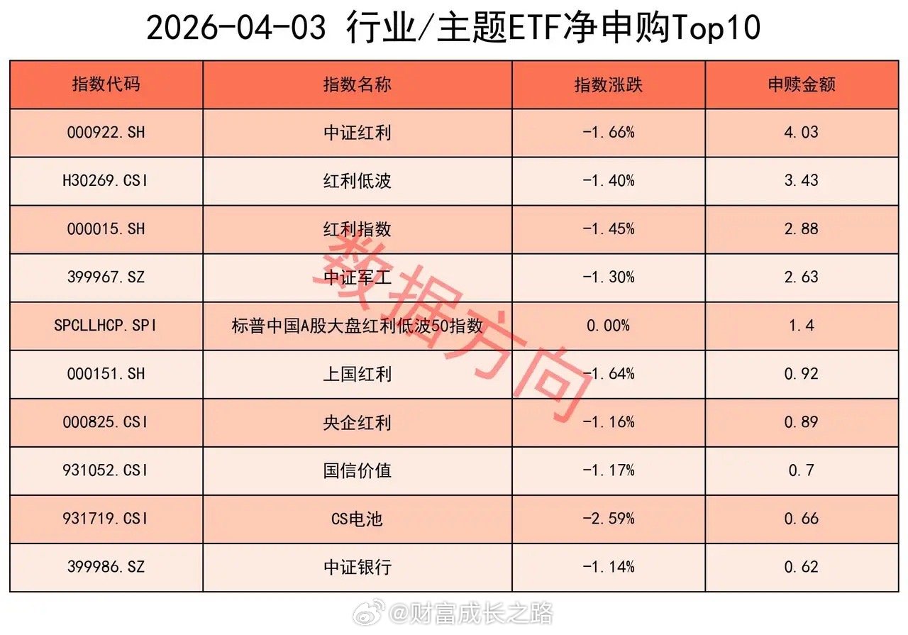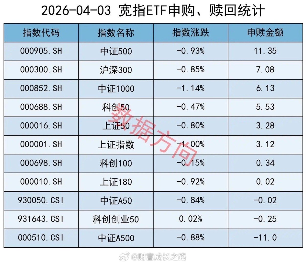 上证50指数(3.28亿)、上证指数(3.12亿)、科创100指数(0.34亿)、上证180指数(0.02亿),分别获小幅净申购。